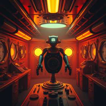 A dramatic science fiction radio play with a male narrator and a female character, The soundscape is dominated by a constant, low-frequency hum, suggesting a spaceship's engine or a similar mechanical environment, Occasional high-pitched whirring and clicking sounds punctuate the dialogue, indicating technological interactions or machinery, The male narrator's voice is deep and authoritative, while the female character's voice is higher pitched and more expressive, conveying urgency and concern, The dialogue is delivered at a moderate pace, with clear enunciation, There are no discernible musical instruments or chord progressions, The production emphasizes ambient sound effects to create a sense of setting and atmosphere, ‑rock, ‑jazz, ‑ska, ‑reggae, ‑rap, ‑folk, ‑heavy metal