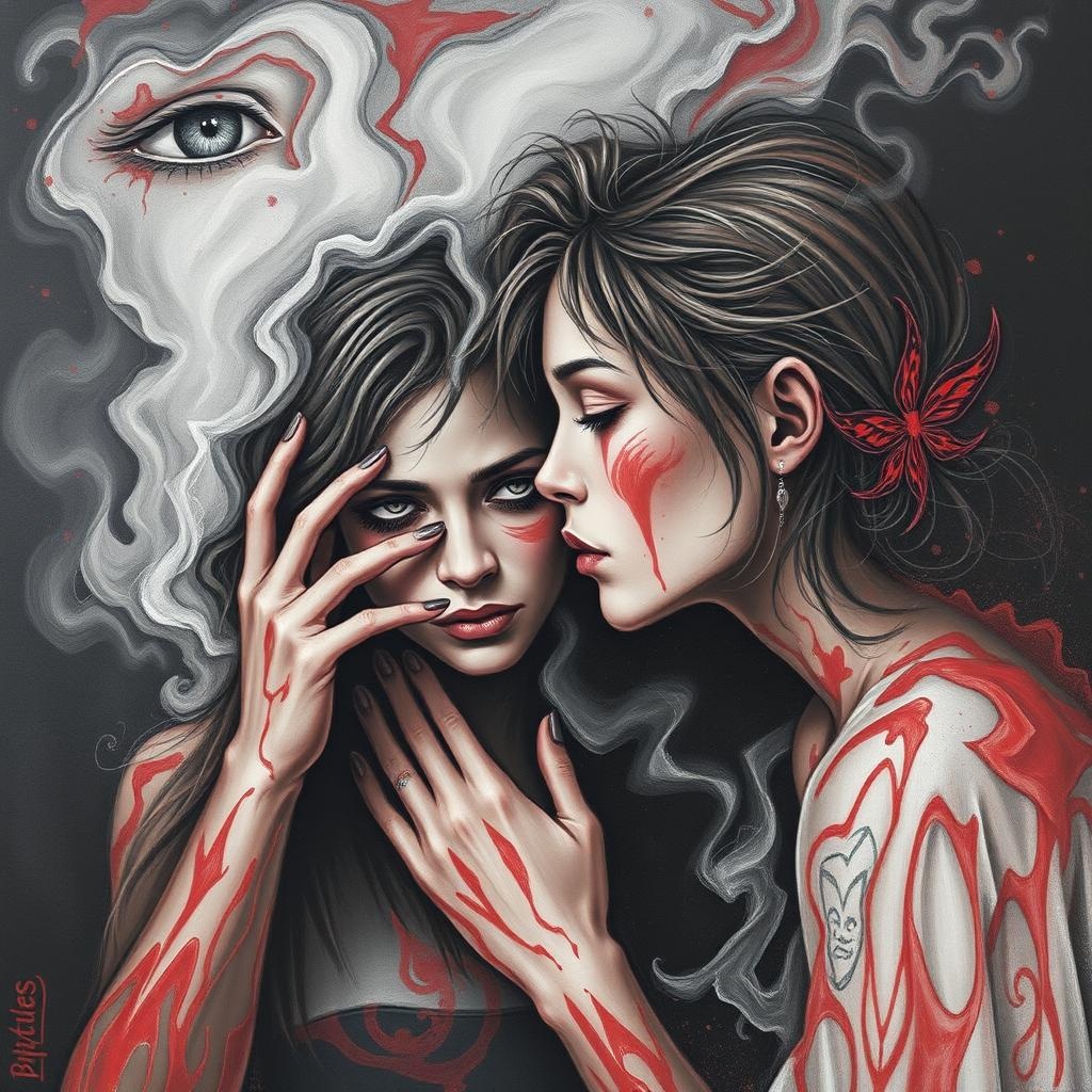 Dark Theatic, Dramatic, catchy, creepy Cello, Dark Dubstep, creepy, intense whimsical beats, Dark Tecno Swing, Alt Pop, dark Pop, ominous vibes, crazy piano, horrorcore, aggressive