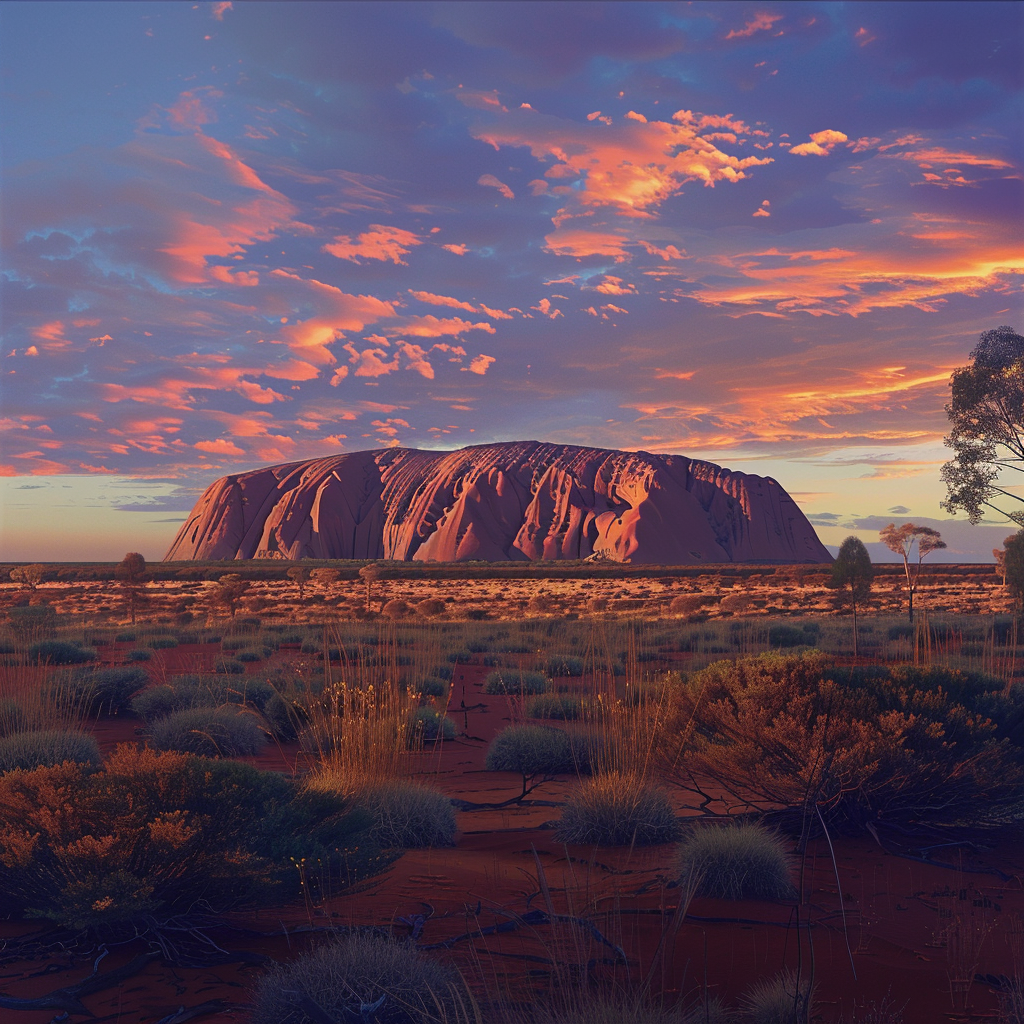 An ambient pop song inspired by Uluru (Ayers Rock), the vast red desert of Australia, Spacious and cinematic, but concise — around 3, 5 to 4 minutes, not longer, Use soft layers of synths and airy textures, with subtle aboriginal influence, The deep drone of a didgeridoo should be clear in the mix, especially between verses, becoming more audible as part of the atmosphere, The song flows through the day’s colors — from dawn’s awakening, to glowing twilight, to a quiet star-filled night sky, Mood: serene, mysterious, timeless, Vocals: transparent, ethereal female voice, singing in Japanese
