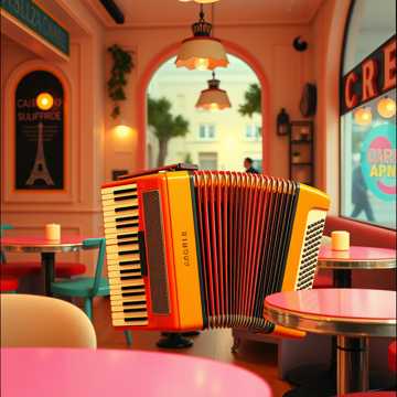 Japanese female vocals singing upbeat, catchy modern French chanson style, Fast tempo with bright accordion and jazzy piano, High key, playful rhythms, and a chorus that sticks in your head, Fun, live