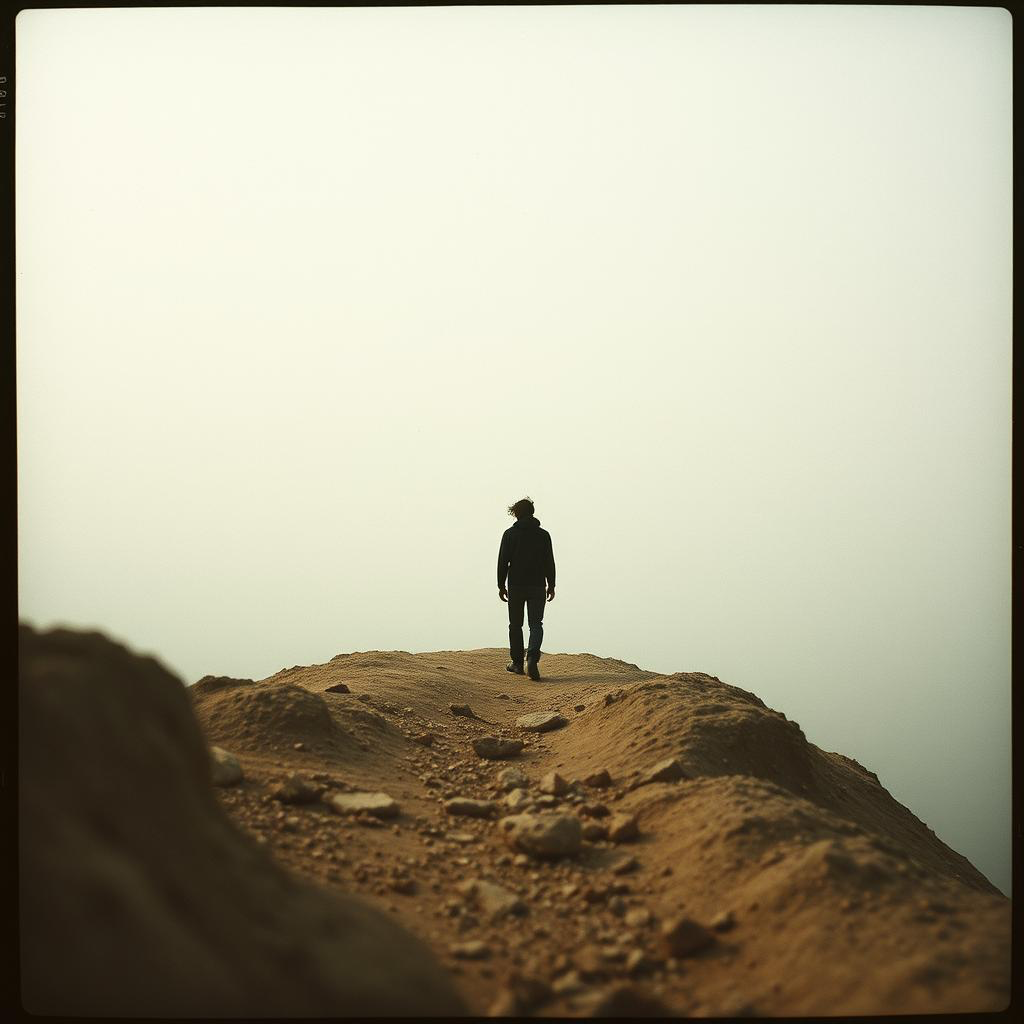 A minor key rock song at a moderate tempo with electric guitar, bass, and drums, Distorted guitar plays sustained chords, bass drives rhythm, drums keep a steady rock beat with snare and kick, Male lead sings clean, slightly melancholic, with some vocal fry, Verse–chorus form, with an instrumental bridge, Wide stereo, reverb on vocals, compressed drums, In the chorus, simulate a live stadium with crowd vocals: thousands singing in unison + call-and-response chants to the lead, creating powerful concert energy, Vocals bright and open, floating above instruments