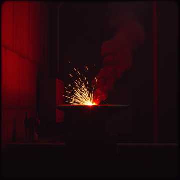 deliver raw power, cinematic; metallic percussion, harsh and guttural, industrial, heavy, and eerie synths create a futuristic, distorted guitars, dramatic, dystopian atmosphere, male vocals, metal