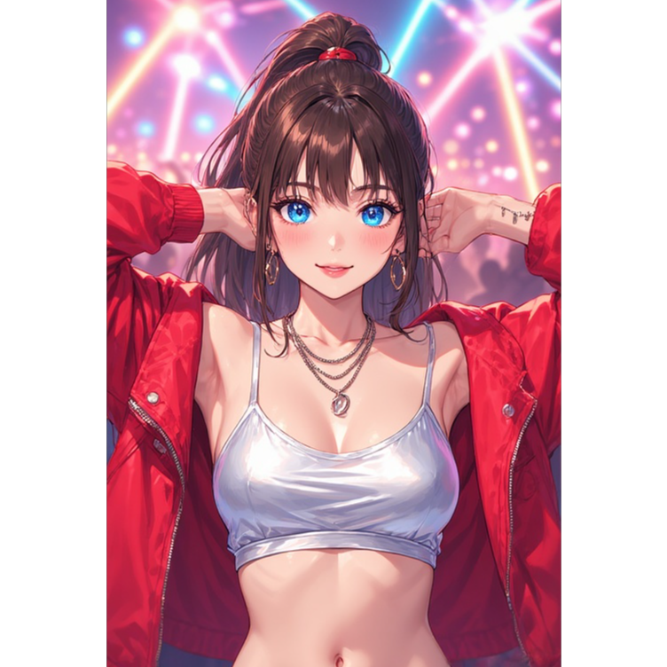 This kawaii metal song collides ultra-bright J-Pop idol vocals, clap-driven beats, and twinkling synths with jarring metalcore drops, brutal chugging guitars, blast beat percussion, and death growls, Playful pop verses ride punchy riffs, choruses detonate with blasts and screams, breakdowns pit idol chants against guttural roars, production flips between sparkling pop clarity and crushingly dense metal, Ends with both styles clashing in an explosive dual-vocal finale, ‑[Lo-fi pop][Compressed bubblegum pop][Muffled vocals][Corporate EDM pop polish][Over-processed]