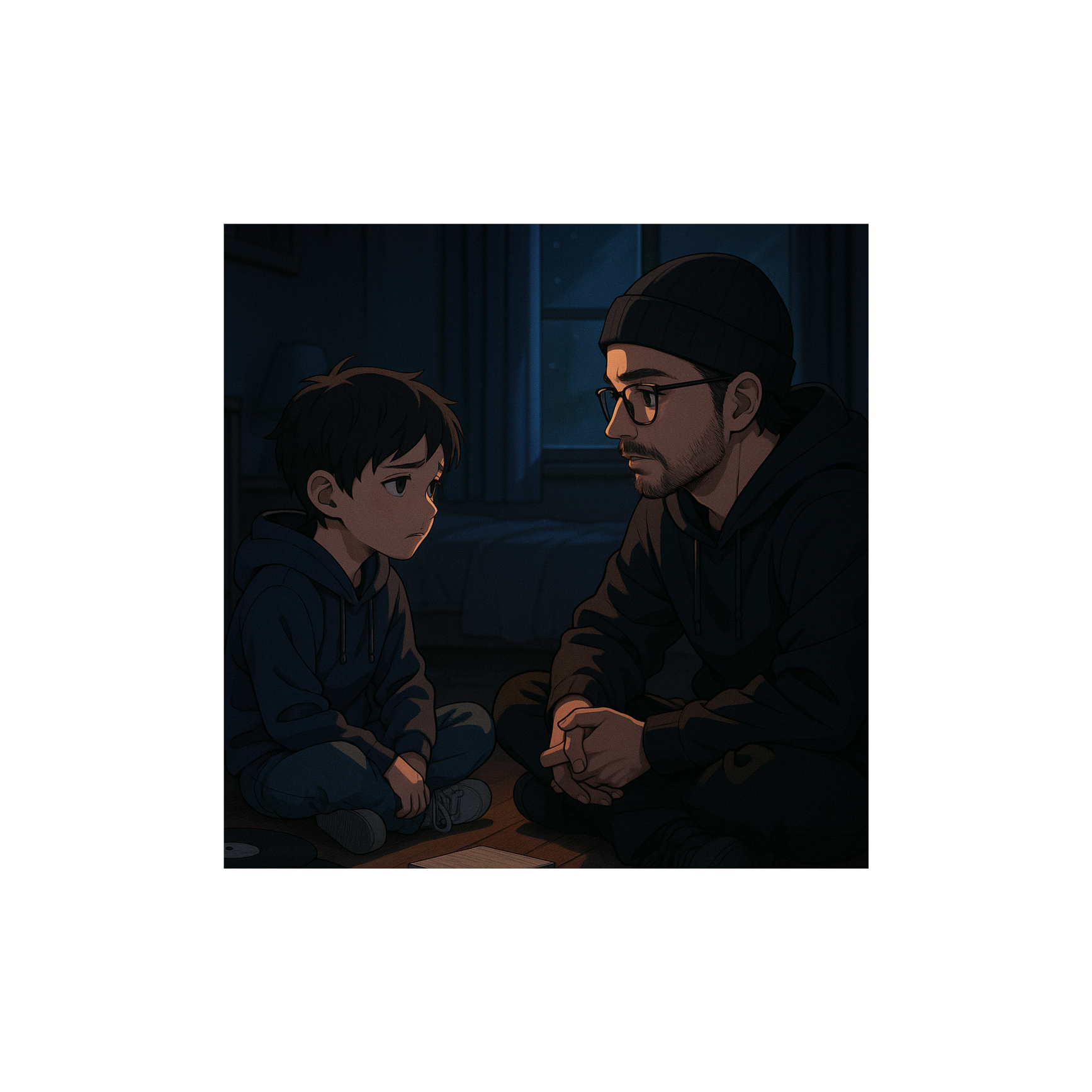 Dreamy lo-fi emo-trap ballad with a sentimental, late-night atmosphere, Instrumentation centers around warm ambient synth pads, dreamy reversed textures, and soft melodic plucks, Beat is minimal and deeply human — slow-swinging lo-fi trap drums with crisp hi-hats, soft claps, deep but gentle 808s, and subtle vinyl crackle, Background FX include ambient room tone, faint tape hiss, and distant clock ticks to enhance intimacy, Vocals alternate between hushed rap and emotional melodic phrasing with clear enunciation and light reverb tails, Layered vocal harmonies bloom in choruses with a bittersweet ache, Overall energy is mellow, introspective, and deeply personal — ideal for a conversation with your younger self at 2AM, Maintain a smooth, melancholic pacing with no glitch or distortion elements, Mood: vulnerable, nostalgic, healing, Enunciate every word clearly and correctly