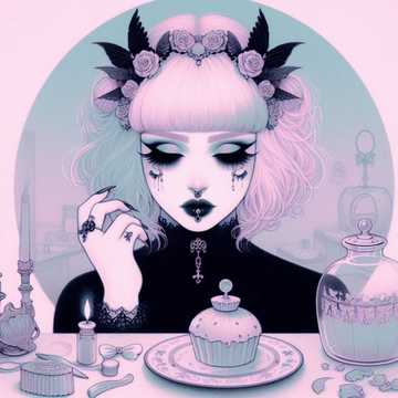 Hyper-pop goth, darkwave, pastel punk, pastel goth metal, gothic synth-pop, soft haunting female vocals, goth