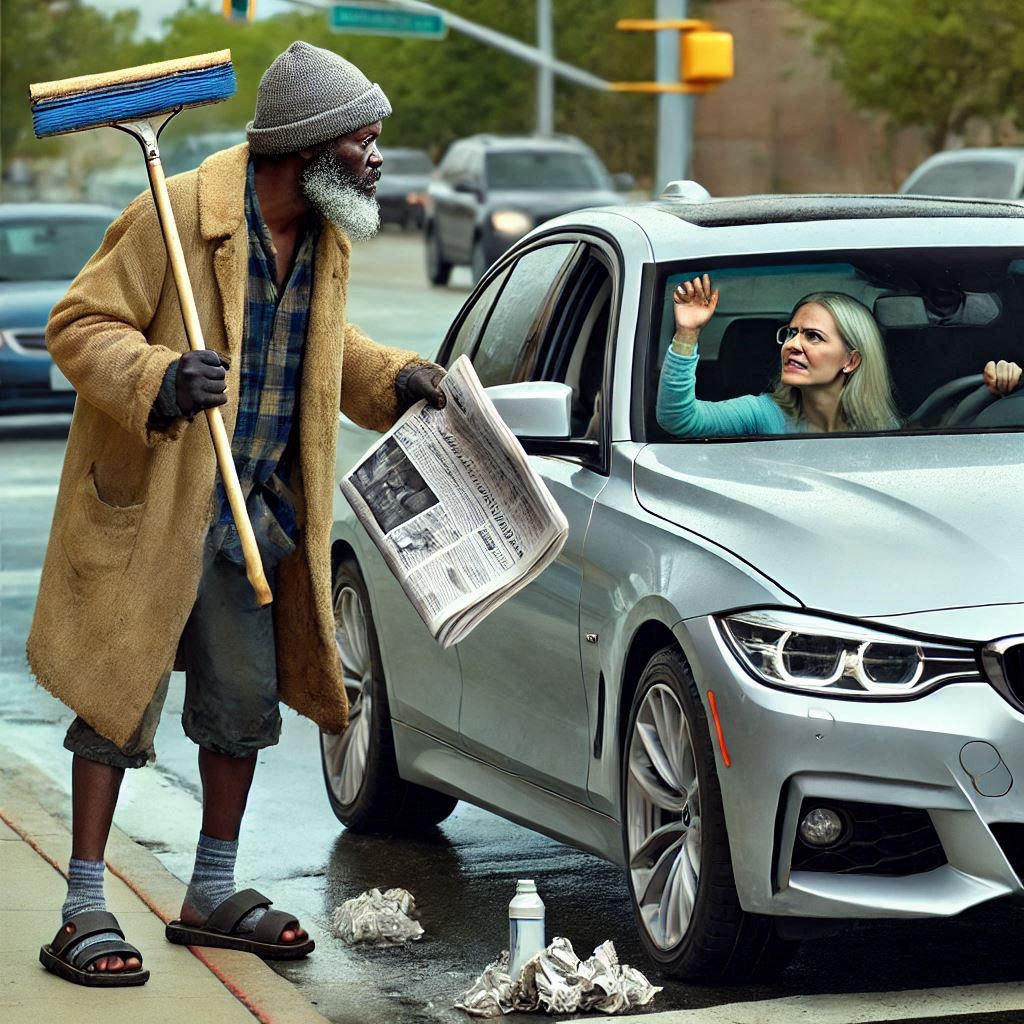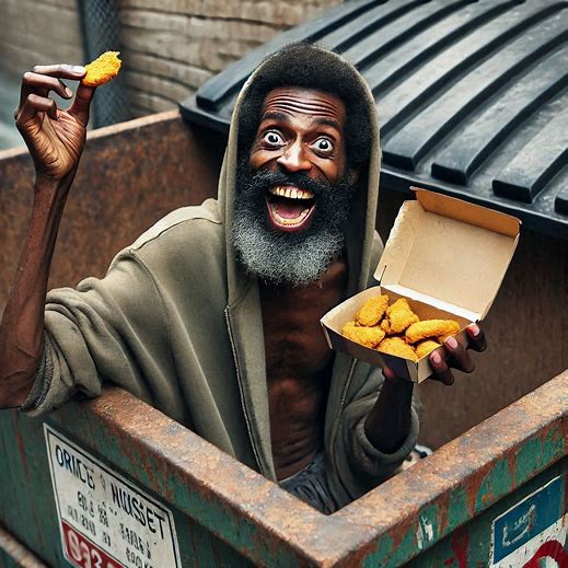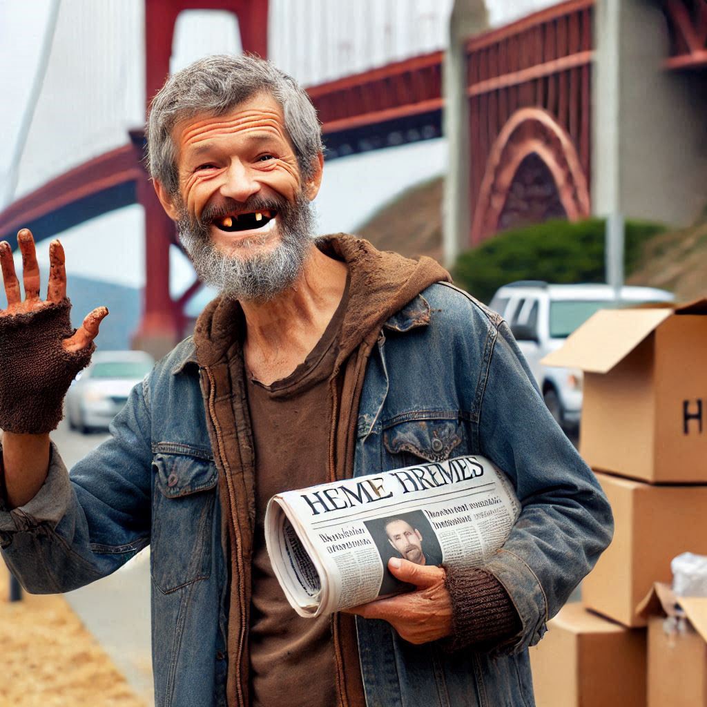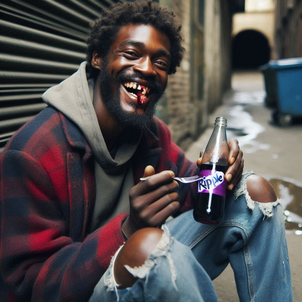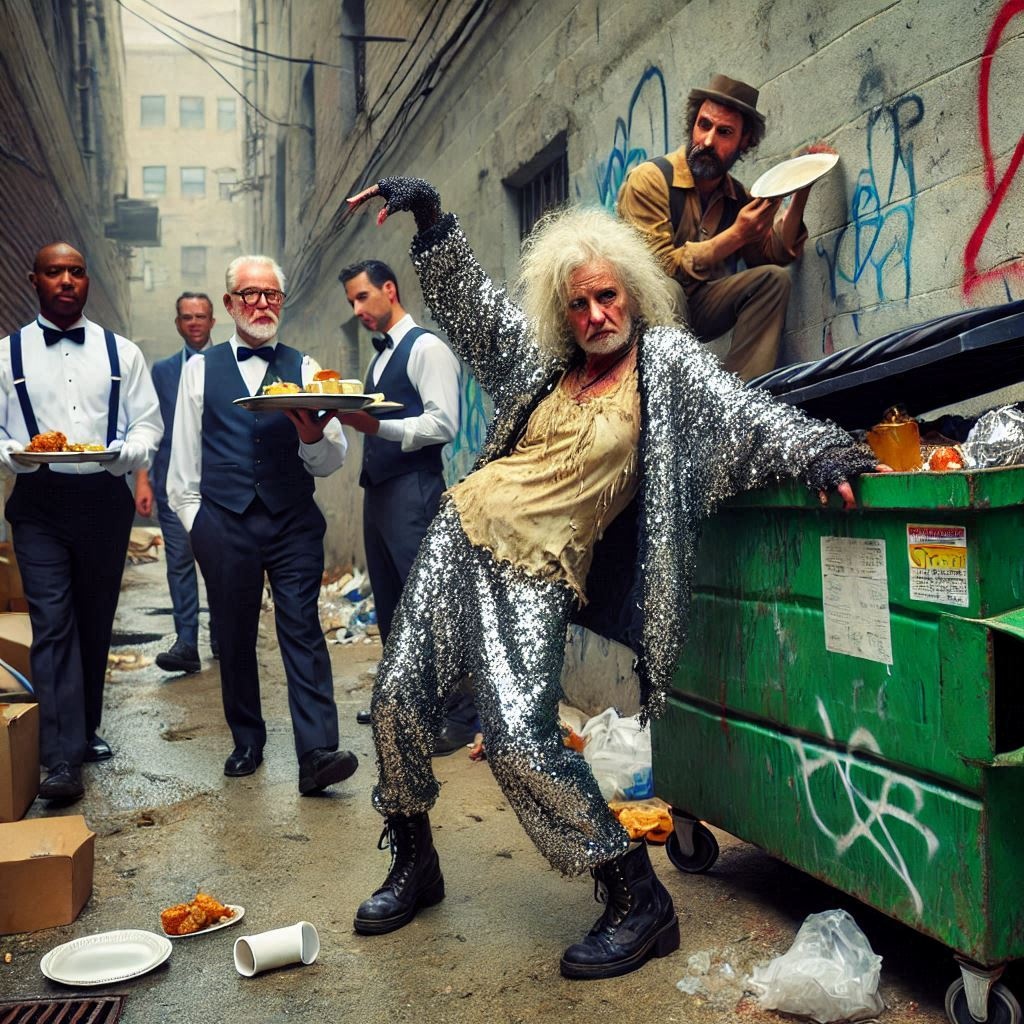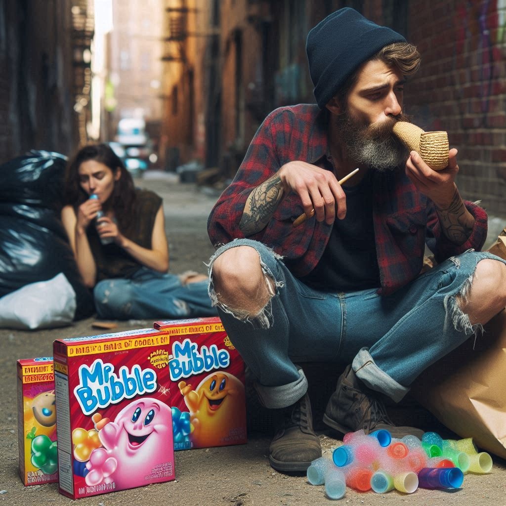 epic homeless jive, crazy babbling, male vocals, banjo, synthesizer, sax, harmonica, bubbles, mid-tempo