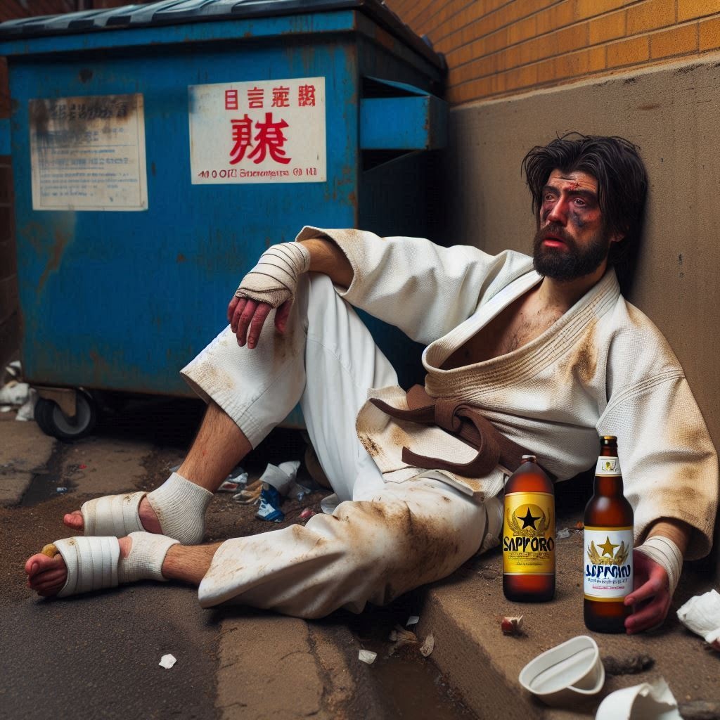 afrobeat funk jive fusion, male vocals, punching and kicking sounds, karate sounds, bucket drums, funk bass, guitar