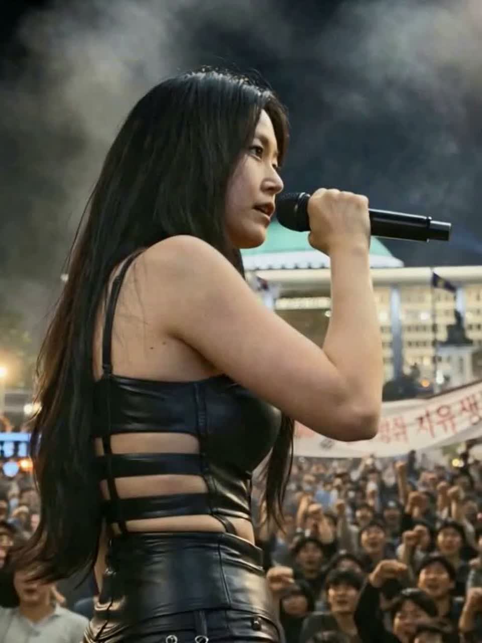 Choir: Mixed male/female choir chanting “민주주의여 만세” in the climax