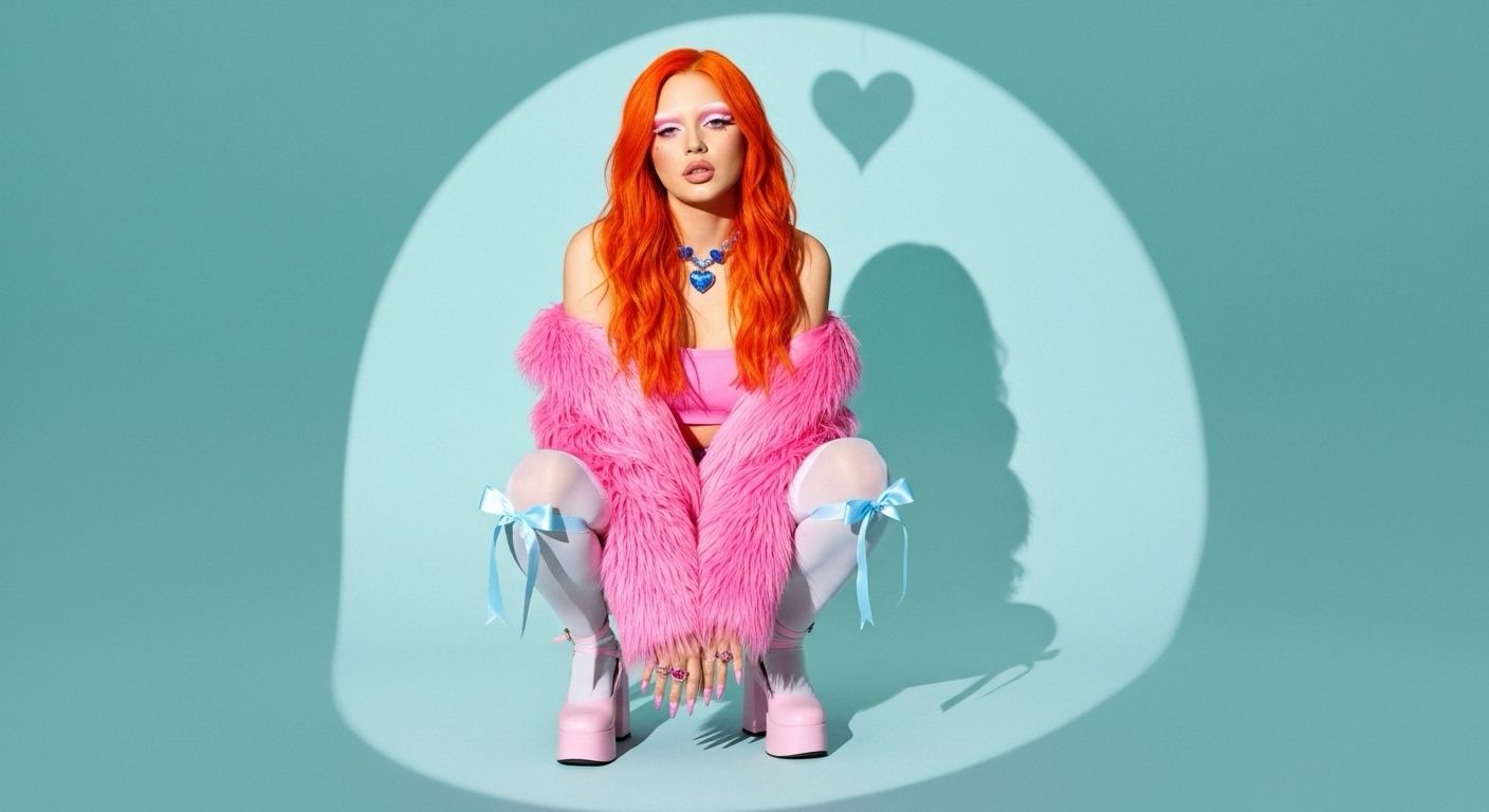 Americana, dream pop, upbeat bubblegum pop, Light, airy, high-pitched female vocals, soft and breathy, delivered in a whispered style, Vocals in contralto–coloratura range, delicate and ethereal, with subtle ornamentation and lightly elongated notes, Hypnotic and seductive phrasing, repeated, dreamlike, fragile, almost weightless, with soft ad-libs, Fast-paced, upbeat bubblegum pop with hip-hop drums, trap-inspired hi-hats, heavy bass, and playful orchestral stabs, Strong hooks, repetitive chorus, spoken-word ad-libs (“Daddy, Daddy”), cinematic, glamorous, dangerous, and tongue-in-cheek, with fast vocal phrasing and a playful, taunting attitude