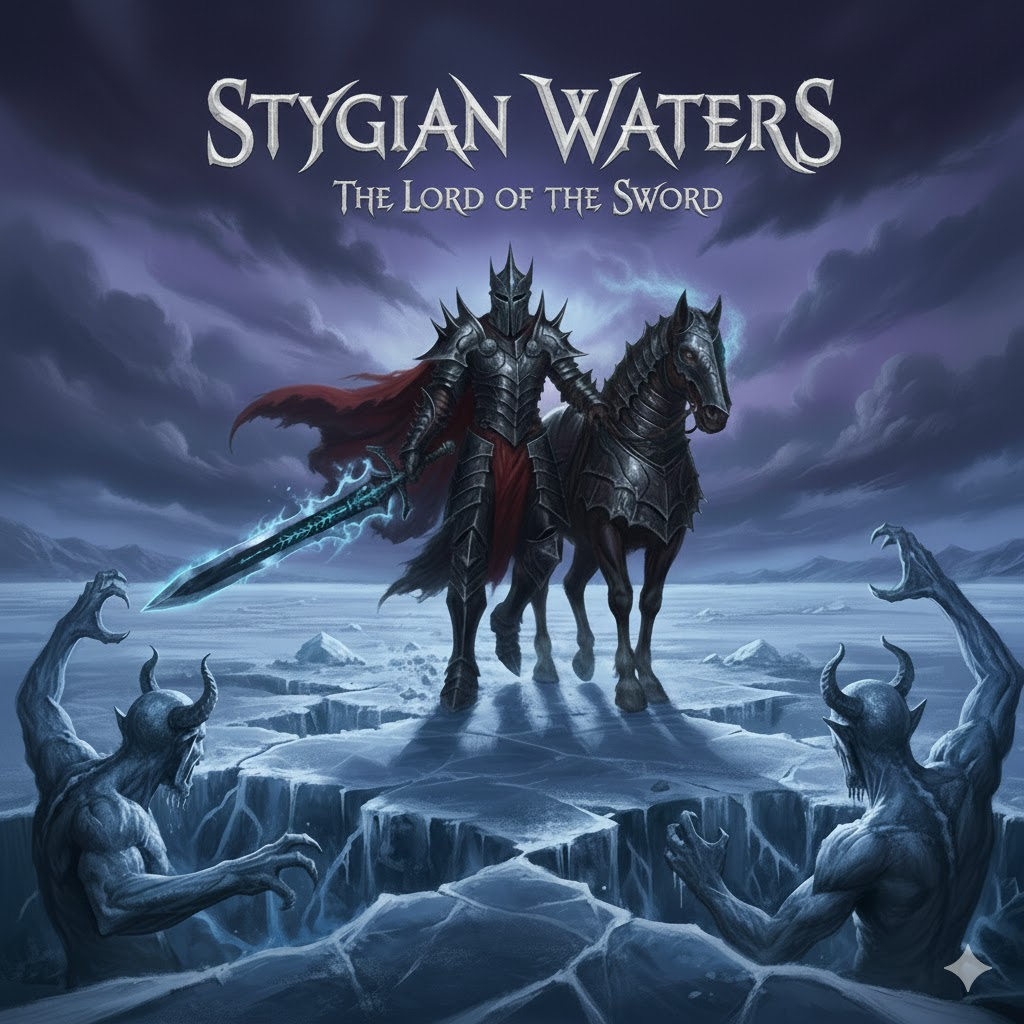 This epic metal track launches with driving riffs guitars and guitars harmonies and driving electric guitars, Verses feature tightly layered riffs and dynamic bass, launching into a massive with vocal acrobatics—tenor male vocals crisp and commanding, channeling theatrical vibrato change to falsetto, melodic chorus with dramatic vocal acrobatics—tenor male vocals crisp and commanding, channeling theatrical vibrato also utilizes falsetto to access even higher notes, as is common among singers with tenor voices, The anthemic chorus erupts with harmonized backing vocals and dense synth textures, ‑Era of the Sword