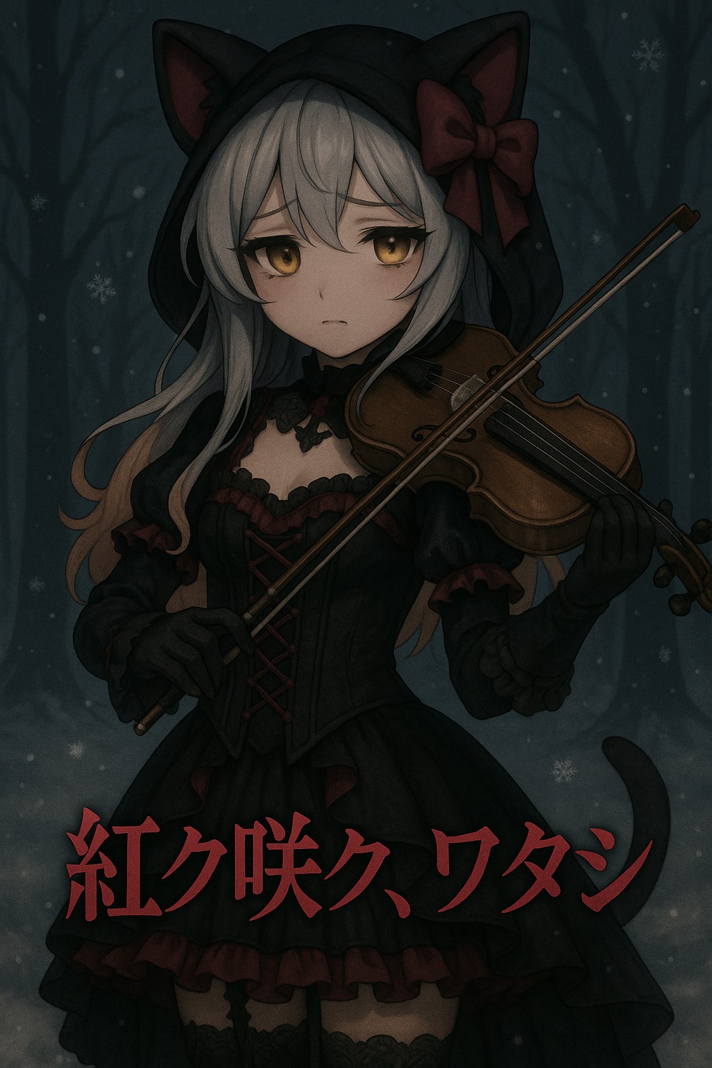 Gothic symphonic metal, emotional female vocal, lead violin, dramatic strings, heavy guitars, BPM 90, cinematic orchestration, Japanese lyrics, dark winter, sorrowful yet powerful, epic chorus