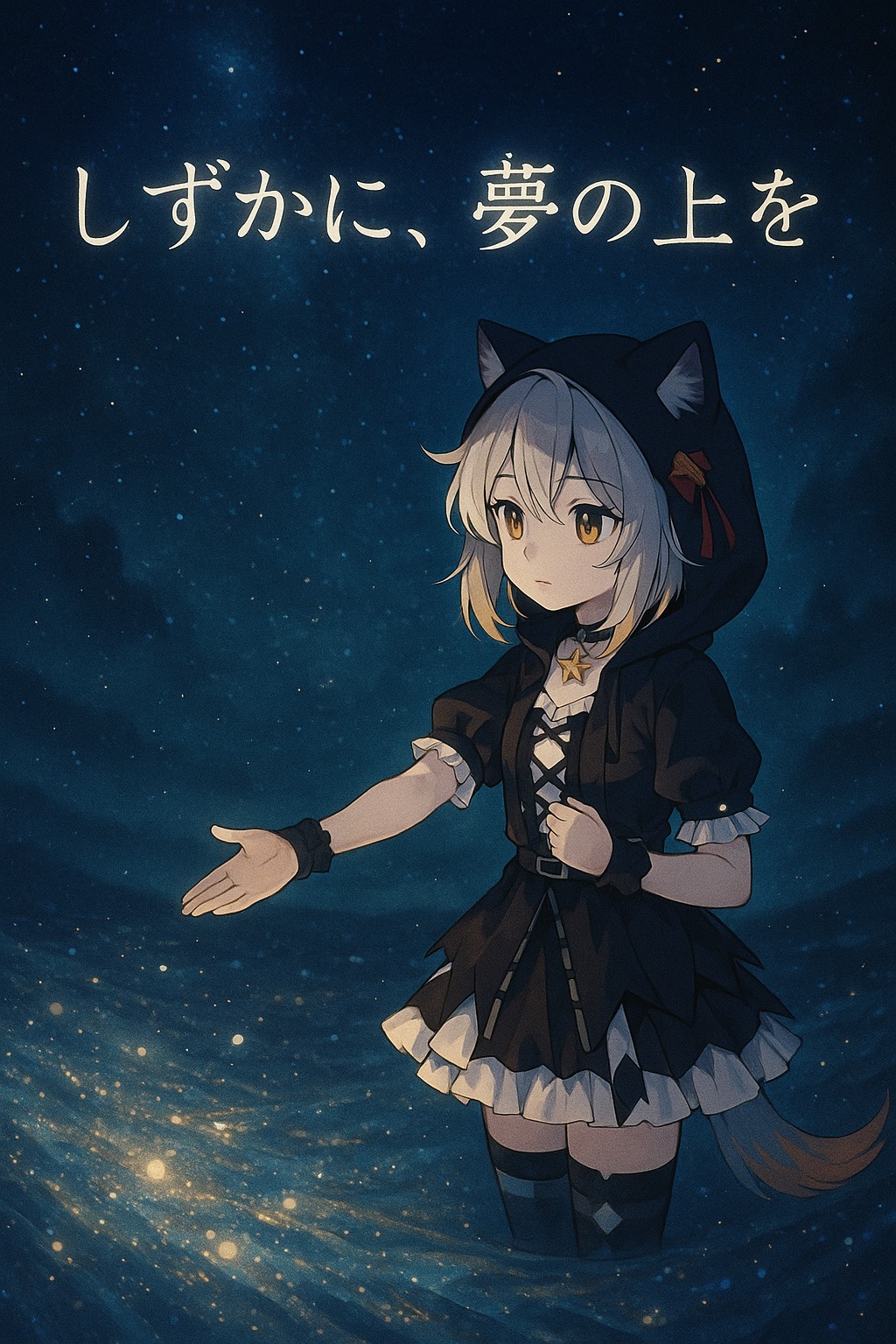Lo-fi J-pop ballad, soft female vocal, emotional and dreamy, slow tempo (BPM 95), acoustic guitar and gentle synths, snowy night mood, Japanese lyrics, starry ambience, subtle piano, warm reverb