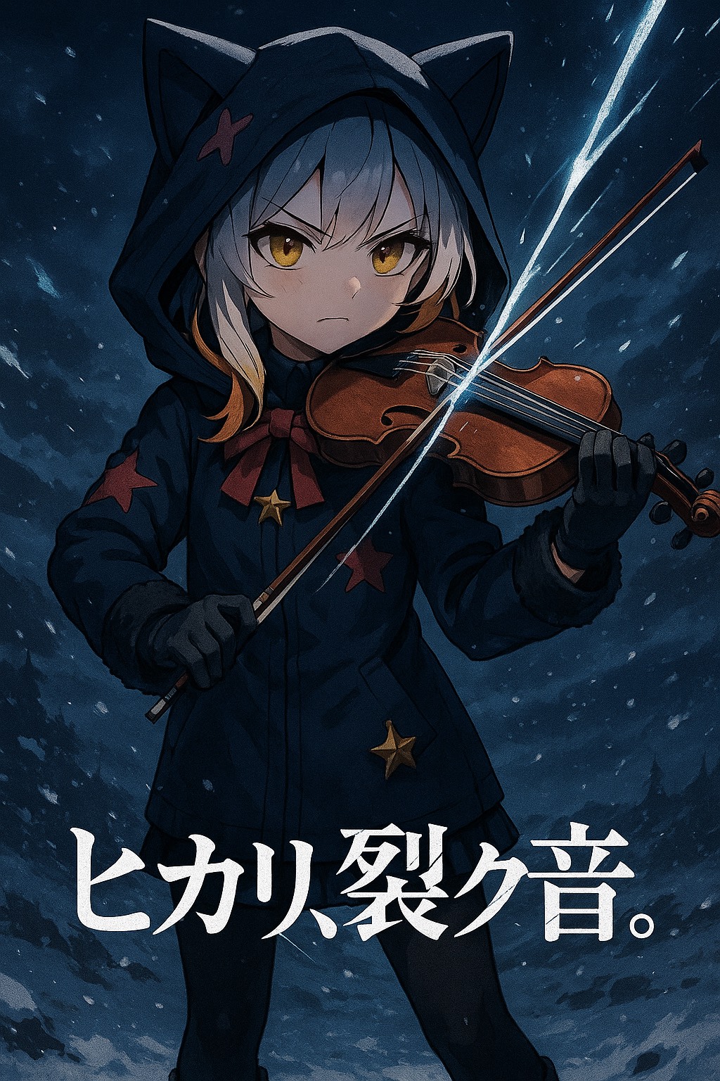 Fast-paced techno-hardstyle featuring intense solo violin and emotional string melodies, Female vocals with clear, youthful tone, expressive and powerful delivery, magical girl energy
