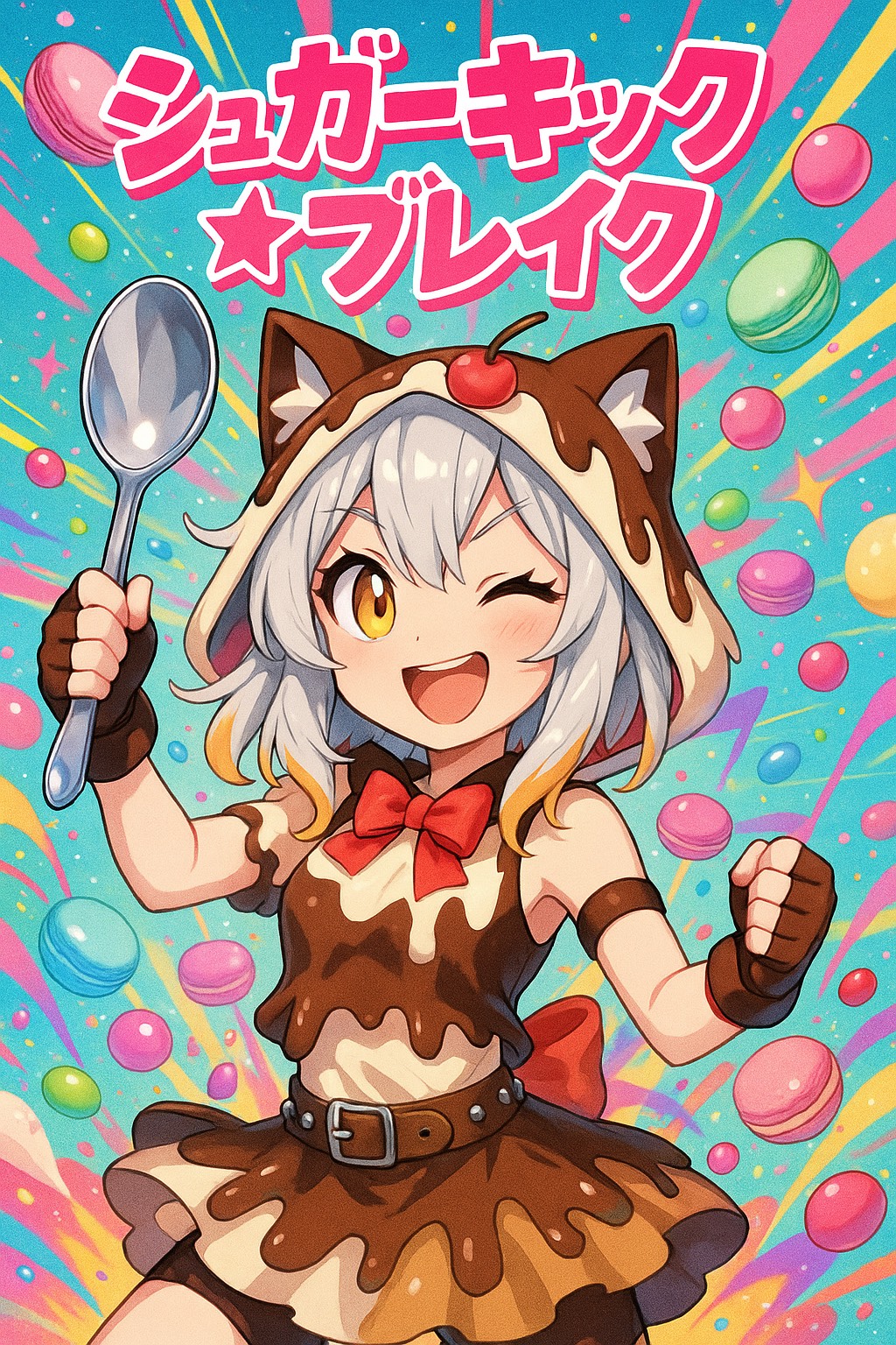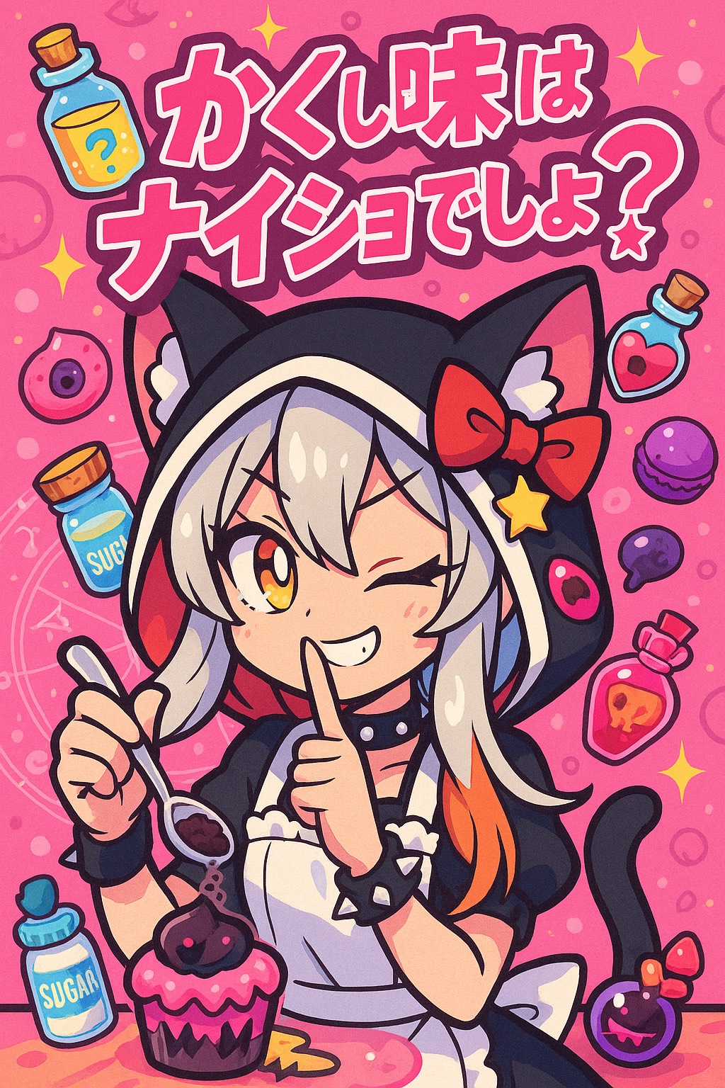 [Verse]: kawaii future bass, sparkly synths, bouncy bass, cute female Japanese vocal, playful but mischievous tone, lyrics about mixing sugar, spice, and secret ingredients