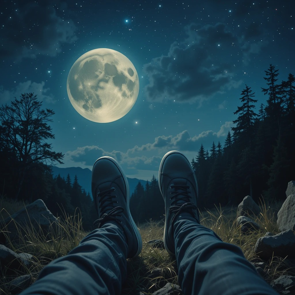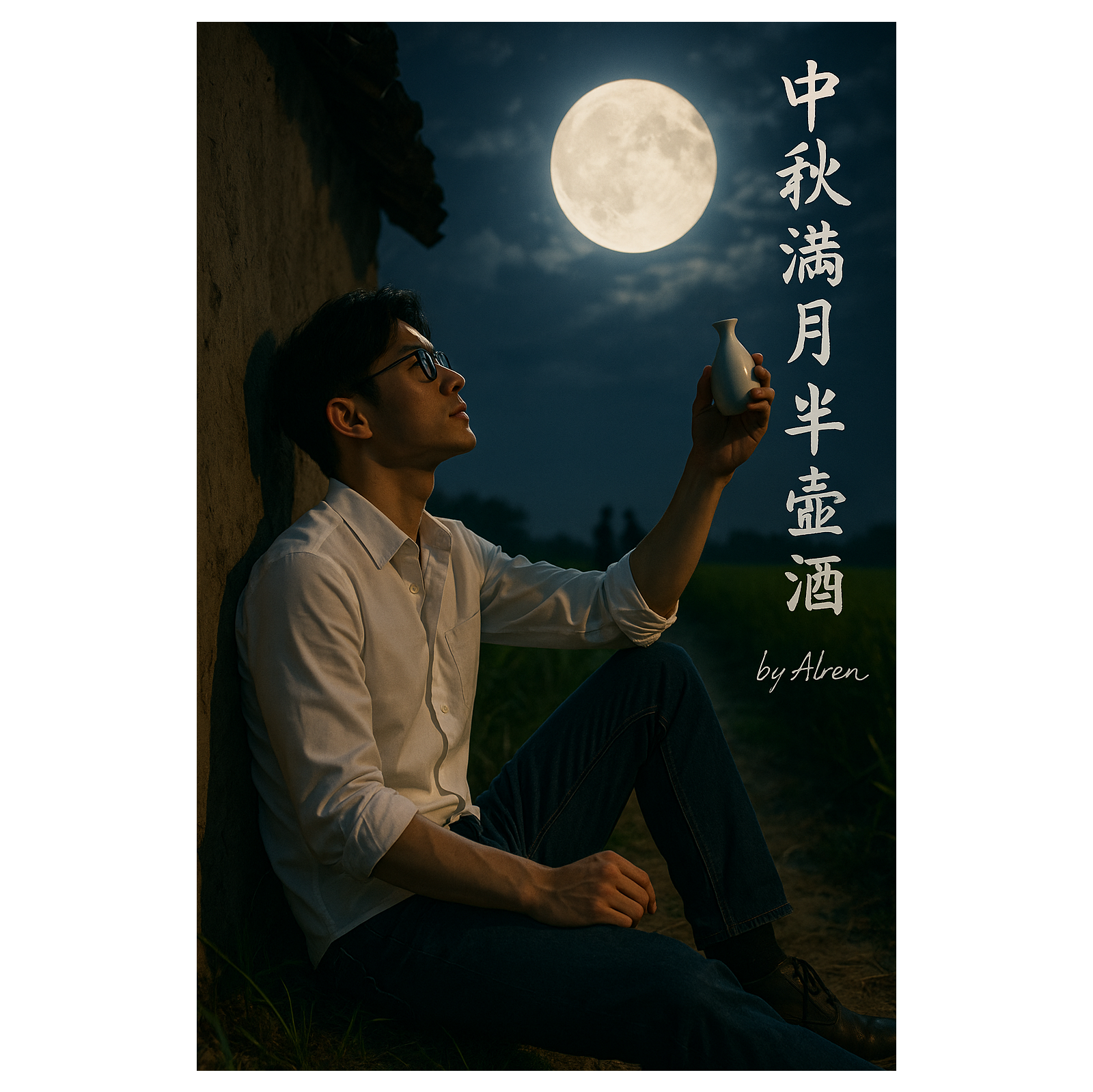 Mandarin ballad, Slow tempo 72 BPM, Key C major, Emotional, heartfelt, nostalgic, Piano leads the harmony with gentle acoustic guitar strums and warm bass, Light drums with brushes, kick and snare enter softly, Strings build gradually in the chorus for emotional lift, adding richness, Bridge adds subtle erhu or suona for traditional flavor, Male vocal, warm and slightly raspy, full of sincerity, Backing harmonies in the chorus to create tenderness and depth, Song structure: Intro with piano and guitar → Verse with storytelling and soft dynamics → Pre-Chorus with strings rising → Chorus with full emotional release, harmonies included → Verse 2 with added textures → Pre-Chorus stronger lift → Chorus repeat, more intensity → Bridge quiet and poetic with ethnic instrument touches → Final Chorus full arrangement soaring → Outro with quiet piano fading out, Mood: under a full moon, drinking half a pot of wine, feeling lonely yet remembering love, soft sadness mixed with warmth