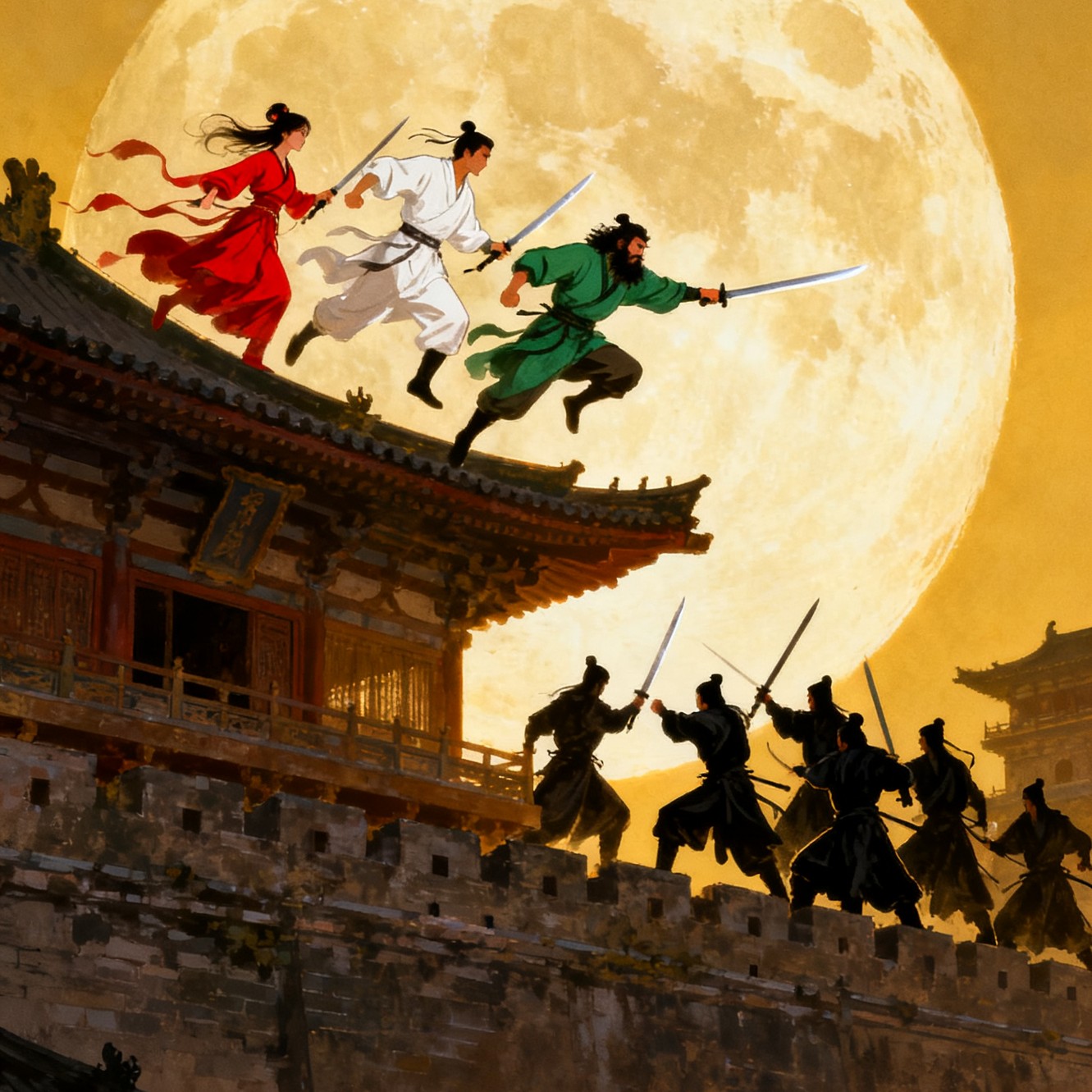 3D surround, Surround Sound, Clean Clear, Mastered, Chinese Classical Opera Orchestra, Erhu, Xiao, War drum, Chinese traditional instruments, Intense, Strategic, Cinematic, Dramatic, Suspenseful, Reflective