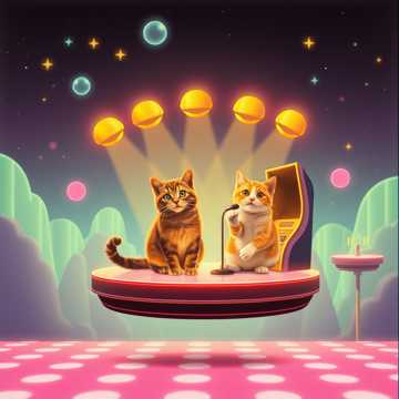 Old-school chiptune arcade groove with tempo ramp: 8-bit bells and music-box plucks start slow, then snap into a double-time pop-punk beat at the chorus, Male childlike vocals alternate with raspy female vocals every line; call-and-response hooks, Violin solo soars over a modulated pre-chorus breakdown, then rejoins for the outro, Busy, playful mix with retro coin FX and a single dry cat meow placed as a rhythmic accent, A whimsical, magical pop sound with a theatrical, storybook atmosphere, Playful and charming, featuring cats as lighthearted, slightly comedic characters within the world, 8-bit chiptune elements blend seamlessly with fantasy-inspired instrumentation, creating a retro-game-meets-magic aesthetic, Sparkling, pixel-like synths and game-style sound effects coexist with warm, enchanting chords and fairy-tale textures, Melodies are catchy and childlike yet gently bittersweet, evoking wonder, curiosity, and nostalgic joy, The overall mood is colorful, imaginative, and dreamli