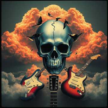 guitar chords, double bass drums, fast guitar, metal, rhythm guitar, aggressive