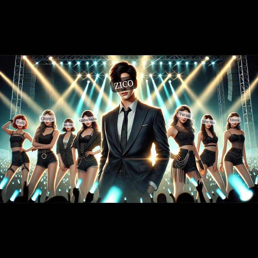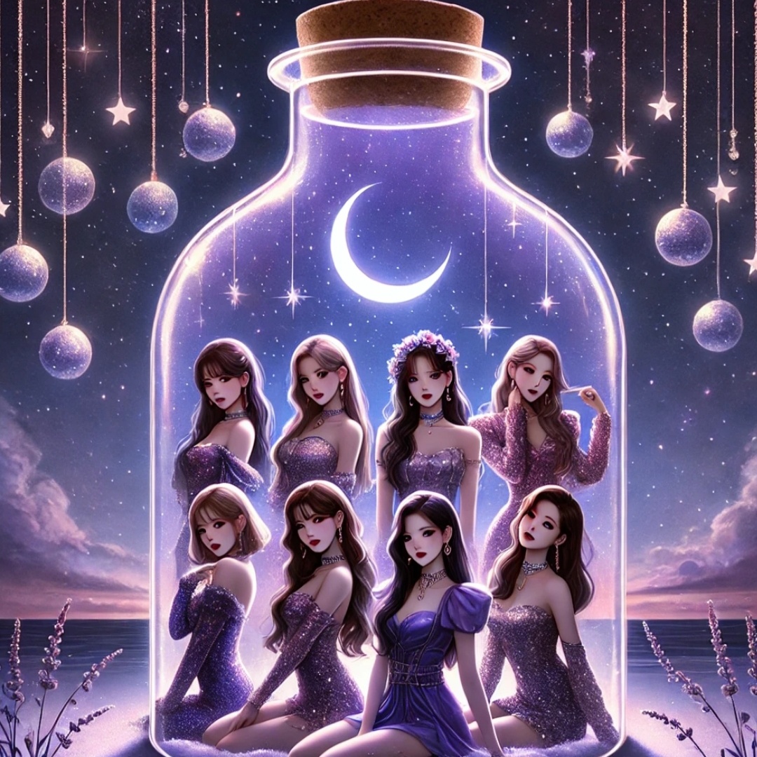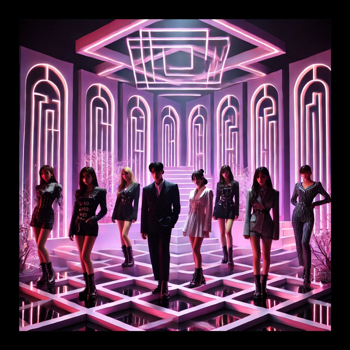 Dark pop x trap fusion, haunting vocals, explicit rap, bold energy, gothic vibe, heavy bass, fierce, elegant, powerful, rebellious, kpop girl group