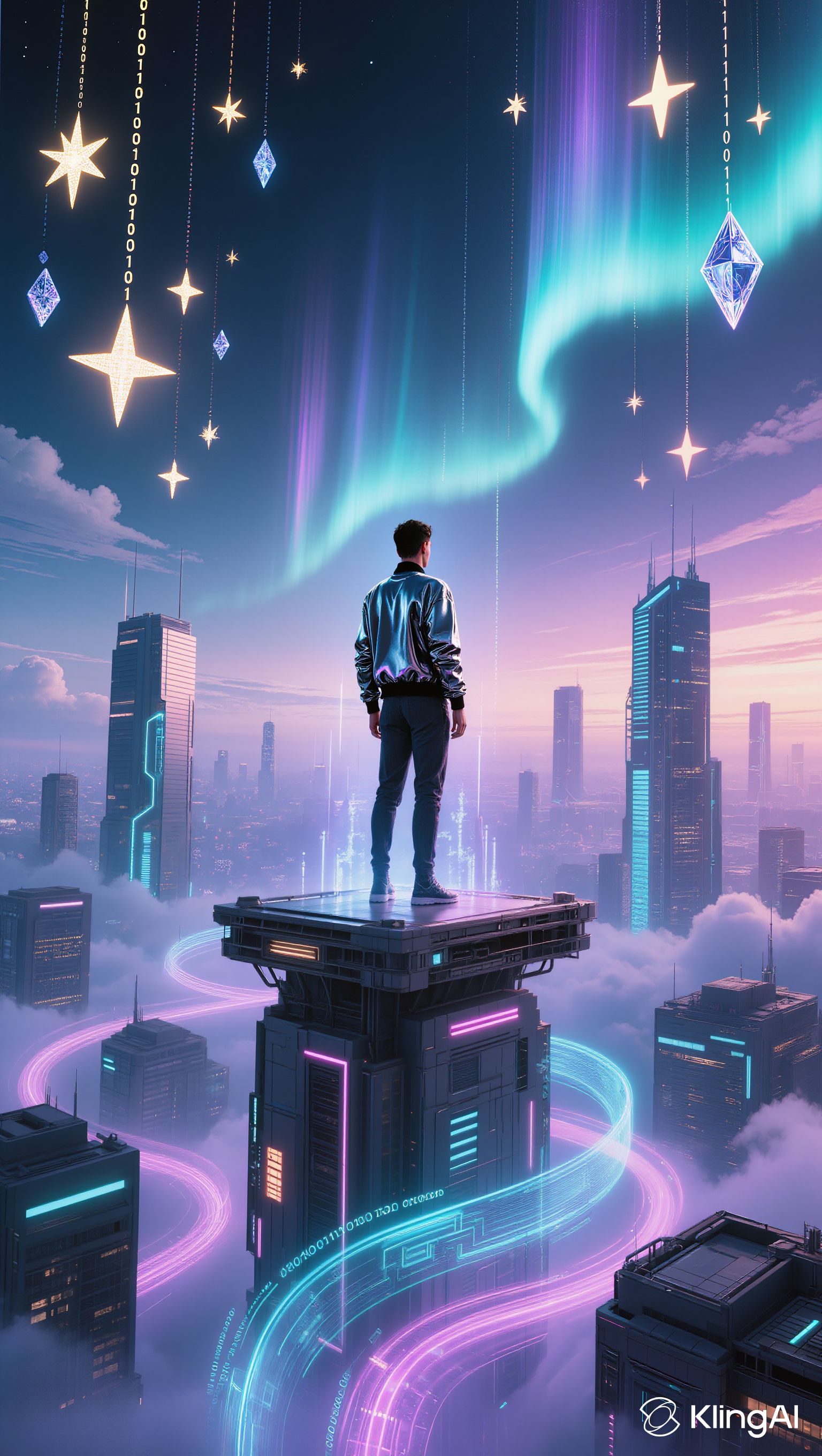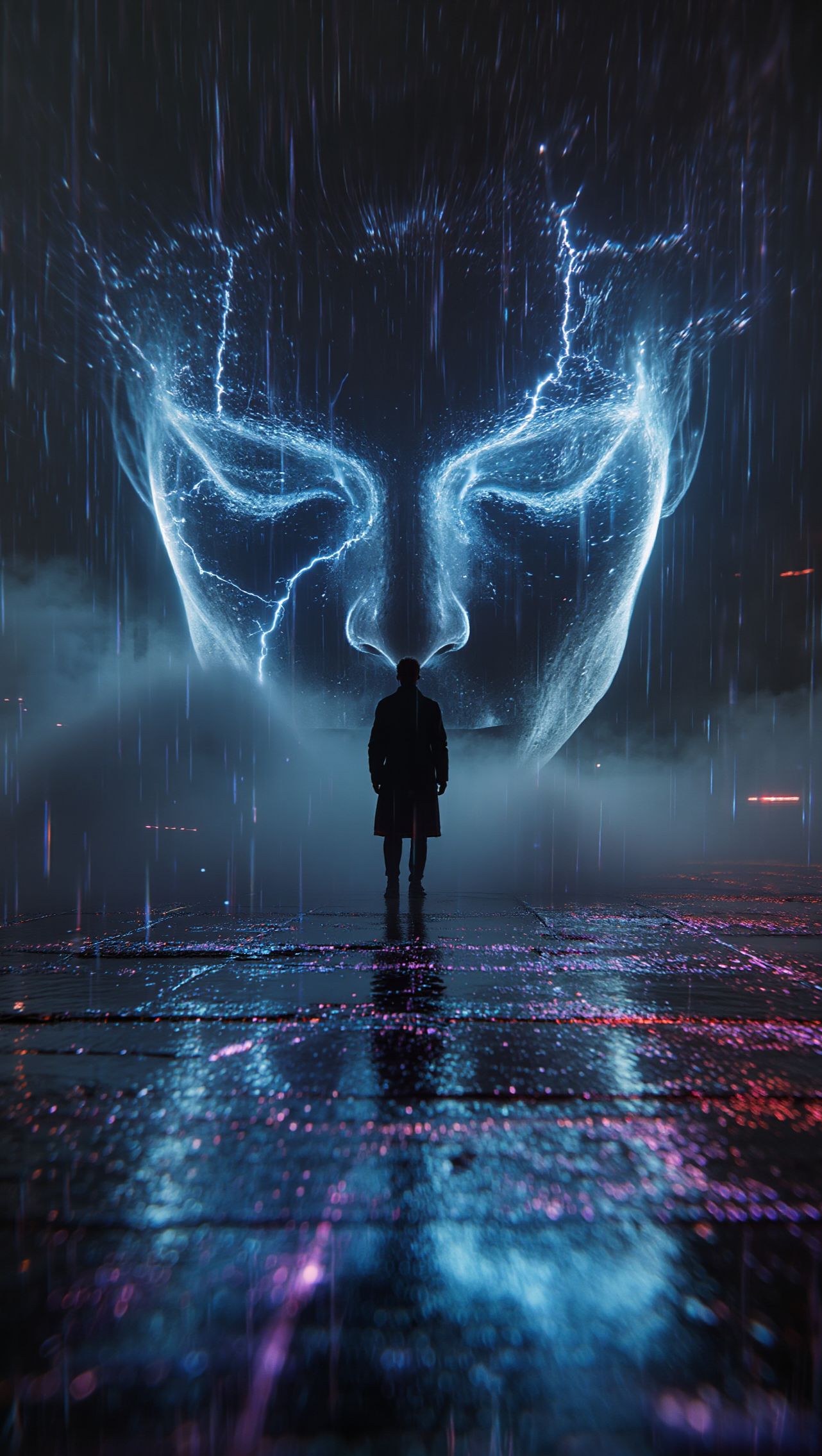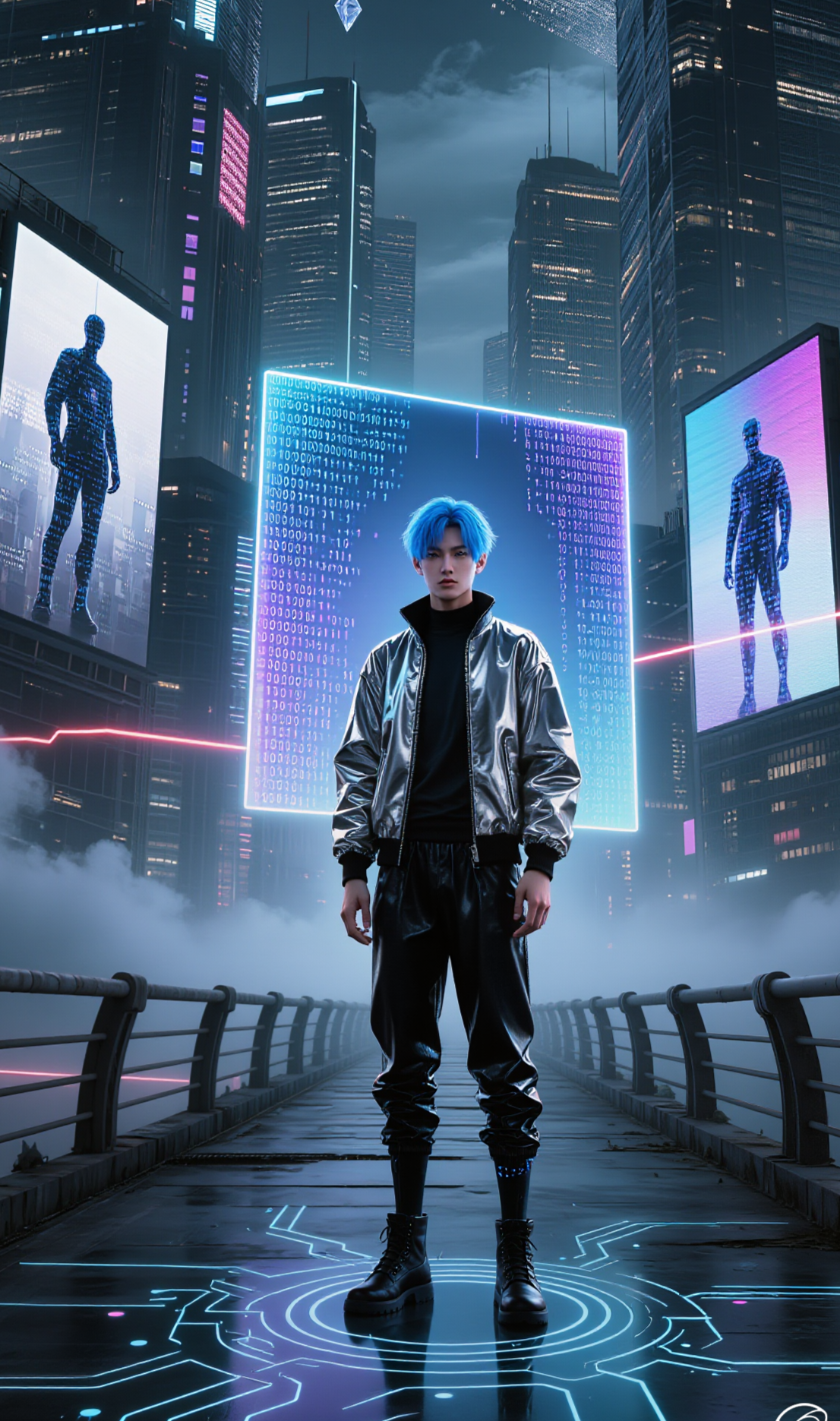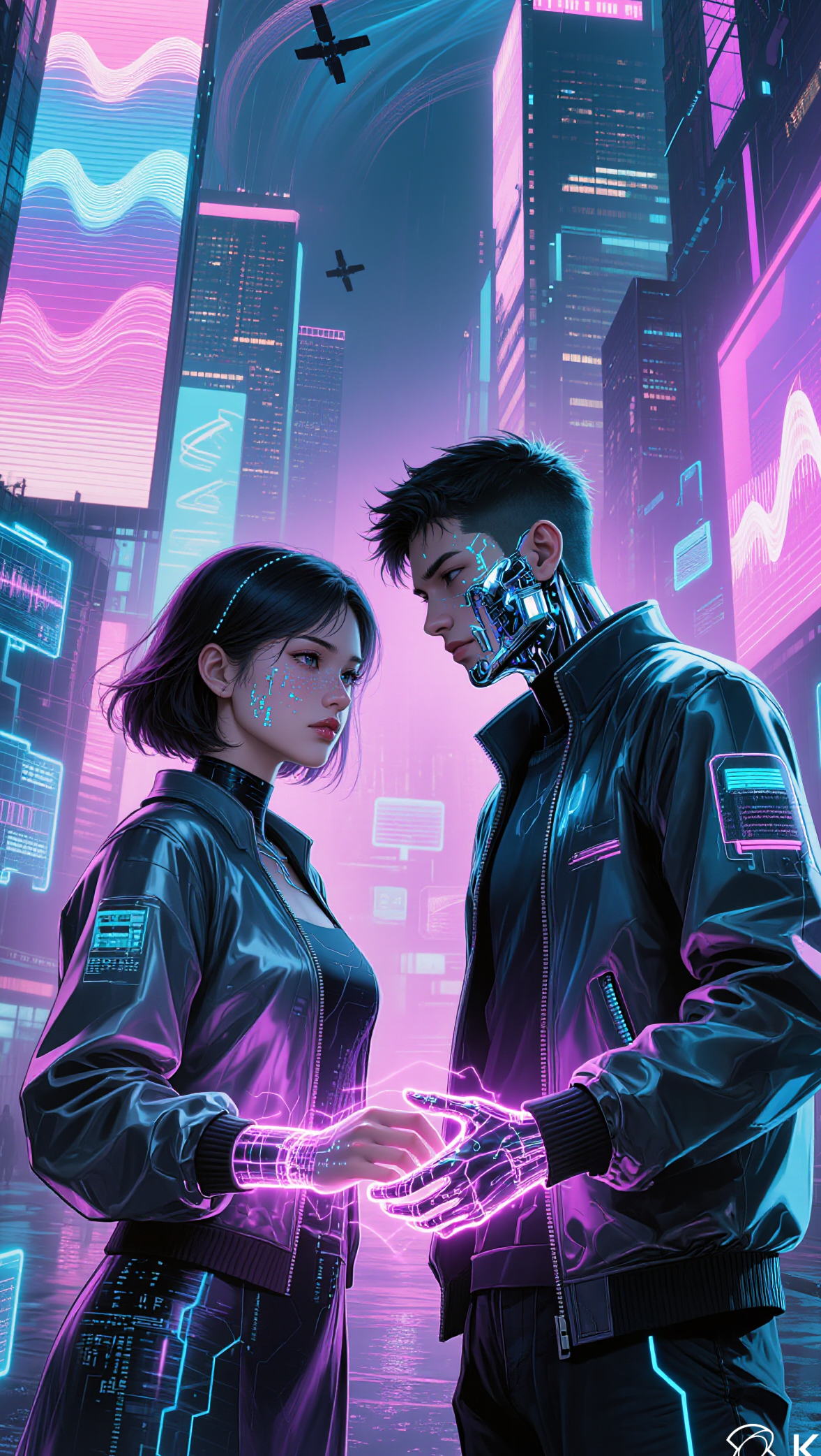 Cyberβnoir electronic with neon synths, gritty bass, and a cold, futuristic tension, Dreamlike orchestral-electronic fusion with floating textures and soft choirs