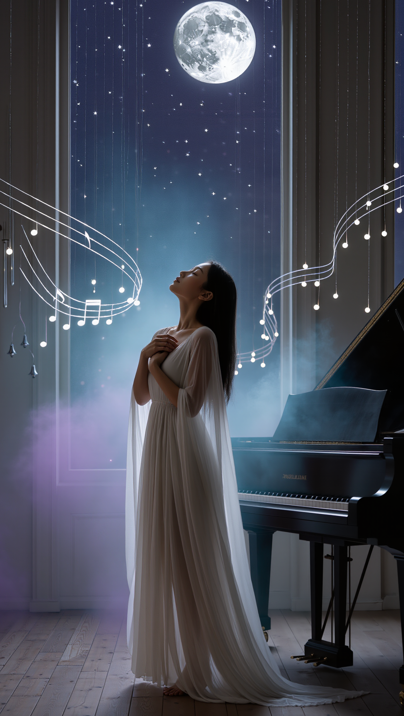 Minimal emotional piano with atmospheric reverb and subtle electronic echoes, Mystical electronic ambience with airy pads and soft chimes, Dreamy electronic lullaby with soft bells and airy textures