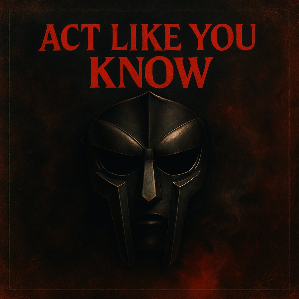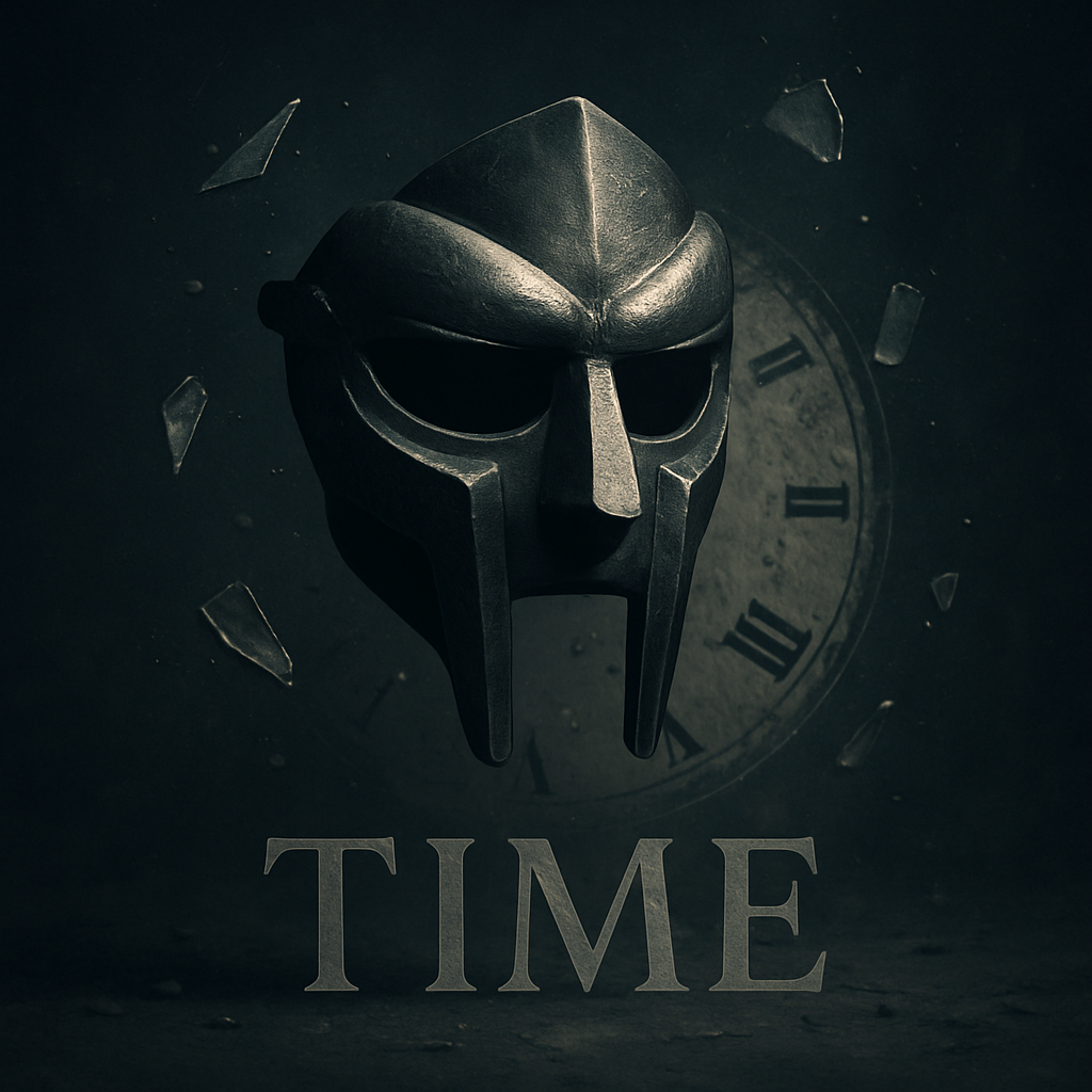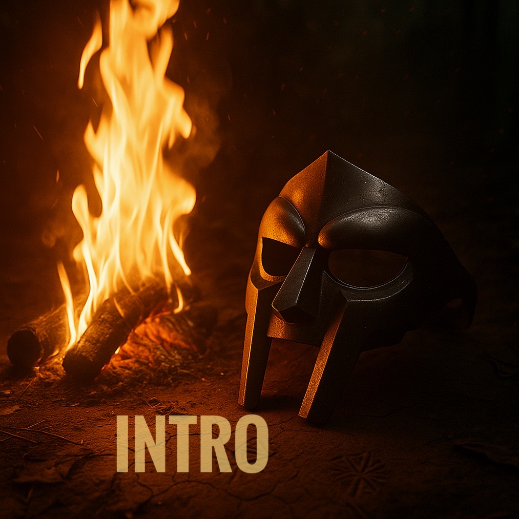 Underground hip-hop with gritty, lo-fi production inspired by Madlib’s beats on MF DOOM’s “Madvillainy” album, Raw vinyl textures, jazz and soul samples, unpredictable drum loops, and experimental arrangements, Male rapper with a deep voice, masked MF DOOM-style flow—dense multisyllabic rhymes, comic book references, offbeat cadence, and clever wordplay, DJ scratches throughout, Abstract, cinematic, and dusty, Beat switches for the bridge and final chorus, Tempo: 92-97 bpm, The male rapper’s delivery, sound and cadence is like MF Doom