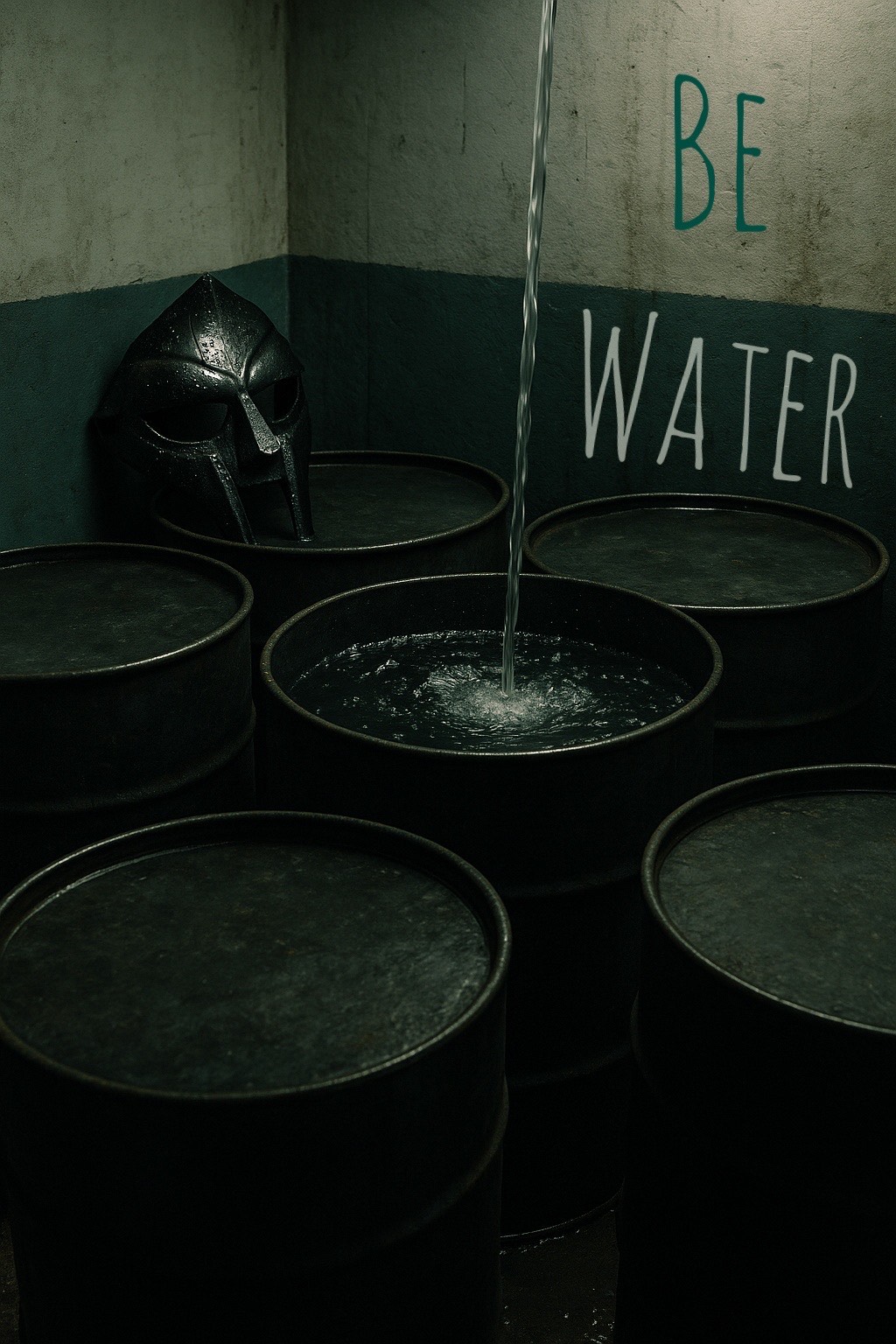 Dusty, lo-fi, abstract hip-hop beat with chopped soul and jazz samples, vinyl crackle, and Madlib-style sample flips, Unquantized, off-kilter drums with a raw, improvised swing, Deep, gritty bass with analog saturation and tape hiss, Eerie textures and spaced-out transitions like “Money Folder, ”Boom bap foundation with experimental layering, Villainous MF DOOM-style rapper with calm, dry, monotone delivery, dense internal rhymes, unexpected cadence, and precise enunciation, Add filtered spoken word intro with projector hum, sample drop-ins, DJ-style scratch choruses, beat switch in third verse, tribal drums subtly layered in bridge, and a metal mask clink sound in outro, Moody, cinematic, underground feel with unpredictable arrangement, slowed vocal samples, and reversed synths for tension, MF DOOM’s tone, flow, and rhyme complexity throughout, Mysterious, esoteric, grimey, like a villain’s origin story broadcast on dusty reel-to-reel tape