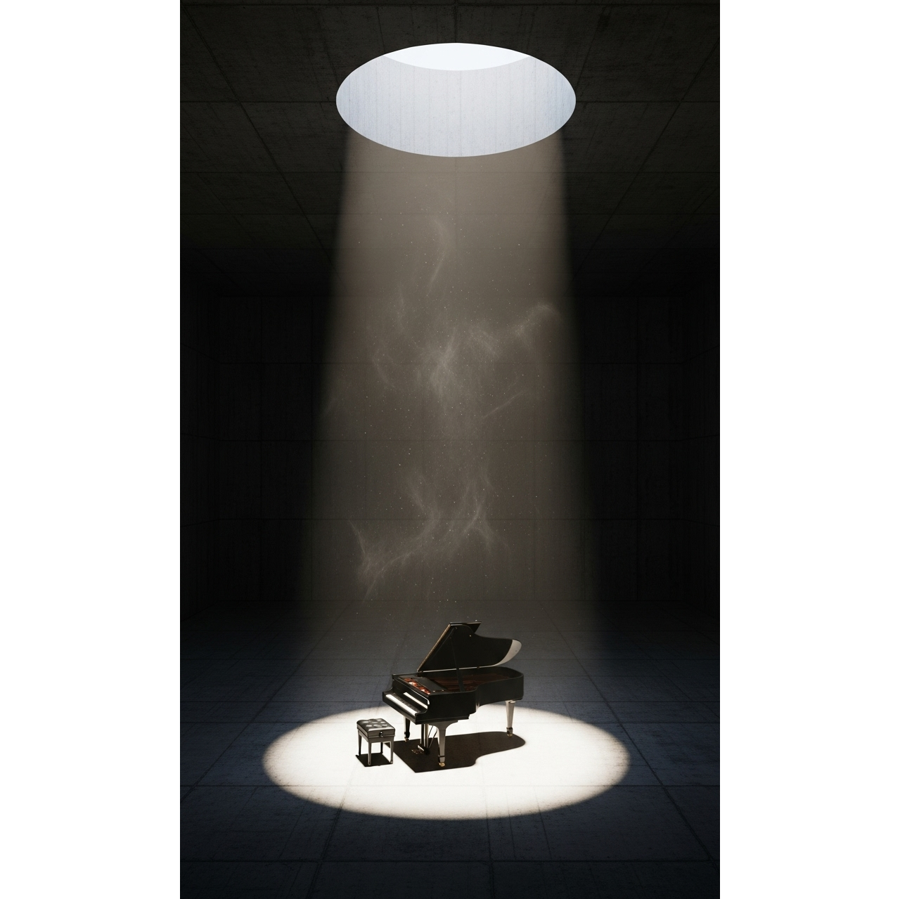 minimal ambient piano, felt grand piano slow melody, soft staccato piano highlights building from mid-section, airy shimmering pads, subtle sub bass drone, unexpected three-note motif, off-beat pauses, Sacred Art influence, deep reverb, serene closure, Rich Atmosphere, infinite fade[Soft felt grand piano slow melody → Airy pads and subtle sub bass drone create a breathing space → Mid-section introduces gentle staccato piano growing gradually → Unexpected three-note motif appears off-beat symbolizing release of convention → Momentary silence → Final free-tempo piano notes with Sacred Art resonance fade into infinite silence]