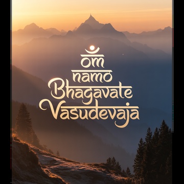 A serene, sacred, cinematic mantra track — luminous and expansive, Gentle ambient textures flow like golden light; layers of ethereal choir and soft temple bells shimmer in the background, Warm deep drones create a foundation of peace, while delicate flutes (Miracle Flute) breathe the melody of devotion, The female vocal softly chants the mantra Om Namo Bhagavate Vāsudevāya with pure tone and heartfelt clarity, each syllable floating in light, The atmosphere is meditative, radiant, and divine — evoking transcendence, surrender, and liberation of the soul, No rhythm section, only slow, breathing movement — timeless and full of grace