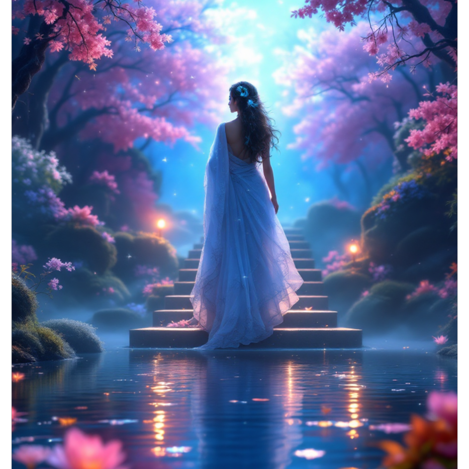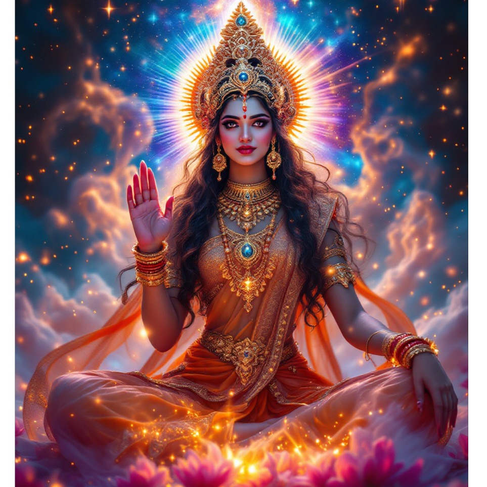 Voice: soft and loving female voice only, clear and devotional, Music: bright, peaceful, and angelic — like morning sunlight, No darkness, no drones, no low vibrations, Instruments: light strings, soft bells, gentle flute, airy pads — creating a tender, uplifting sound, Mood: comforting, pure, and sacred — like a divine embrace from the Mother, Quality: clear, high-fidelity, with no noise or whispers, This track should feel like a warm beam of light — soft, soothing, divine