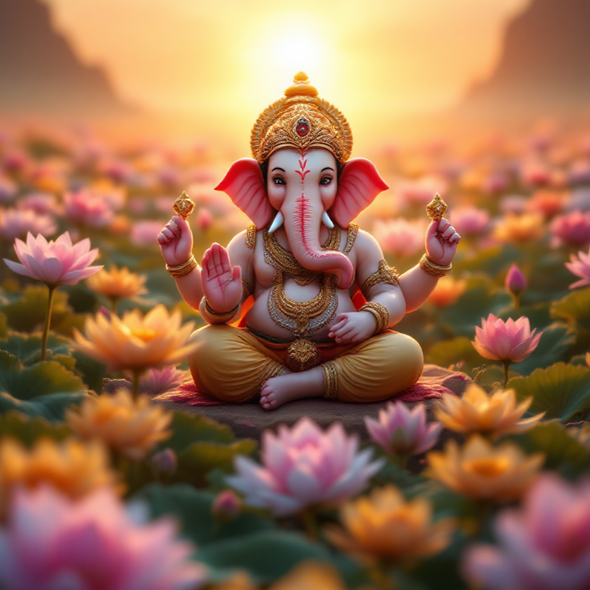 A vibrant, energetic track that embodies Ganapati, the remover of obstacles, The mantra "ॐ गं गणपतये नमः" will be repeated with uplifting variations, creating a sense of progression and connection to the divine, Rich percussion with tabla and dholak rhythms will evoke a festive, sacred celebration, while gentle strings and ambient textures build energy within a meditative atmosphere, Lead: warm female mezzo head-voice, The voice should be bold, with moments of reverence amplifying the mantra’s spiritual depth, Each repetition of the mantra will draw the listener closer to Lord Ganesha's divine energy, culminating in a triumphant, joyous conclusion filled with light and blessing, Mood tags: Uplifting, Energetic, Sacred, Spiritual, Joyful, Rhythmic, Percussive