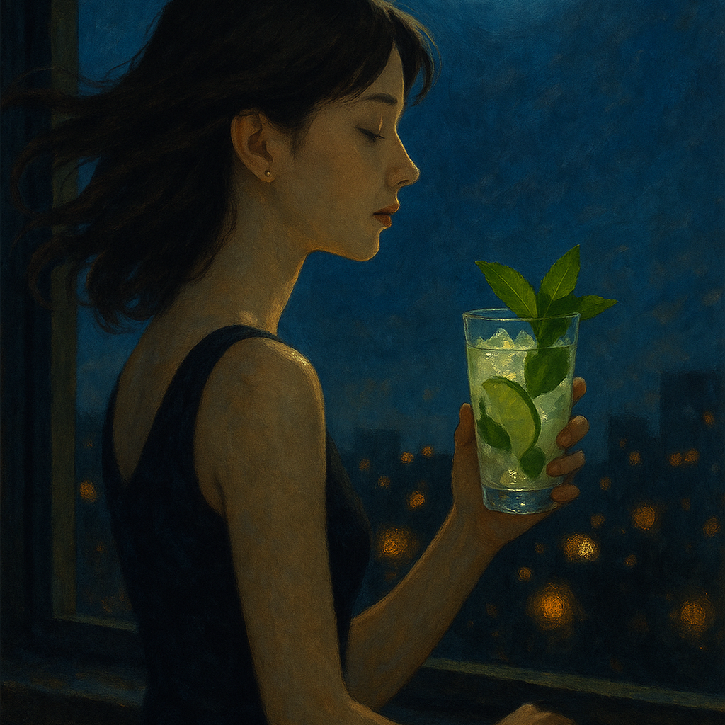 [Atmosphere: Nighttime, elegant, bittersweet yet refreshing like mint, bar/lounge mood]