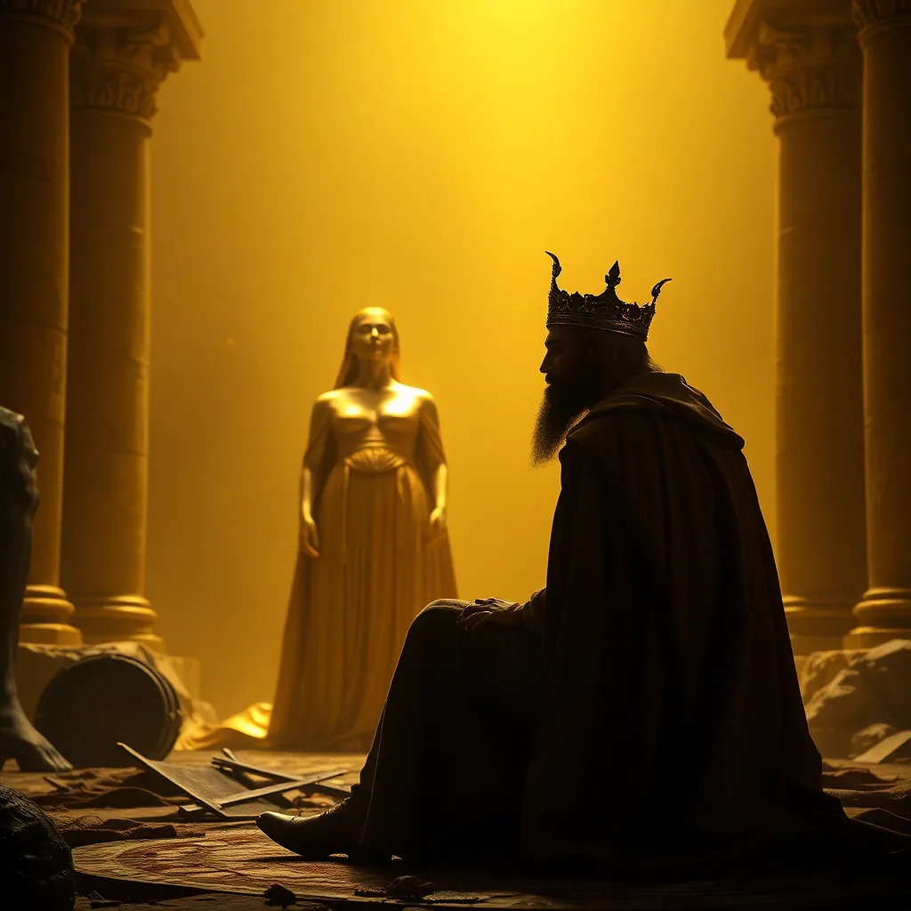 ambient, tragic, haunting, melancholic, alternative, soft reverb, psychedelic, addictive, soft high female choir harmonizing, melodic, mystical, mythical, fearful, epic, ancient, strong, boss fight, deep low male singing-voice
