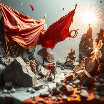 Epic thrash sympho-power metal opera explodes with rapid, intricate double-kick drumming, layered distorted guitars, and a cinematic orchestra: soaring strings, brass, choirs, and dramatic percussion, Male and female vocals exchange operatic lines and harmonize in climactic choruses, each playing defined characters, Unpredictable time changes, grand organ chants, and intense instrumental breaks build relentless tension and drama, finishing with a massive orchestral finale, heavy guitar solos, neoclassical solos, dark