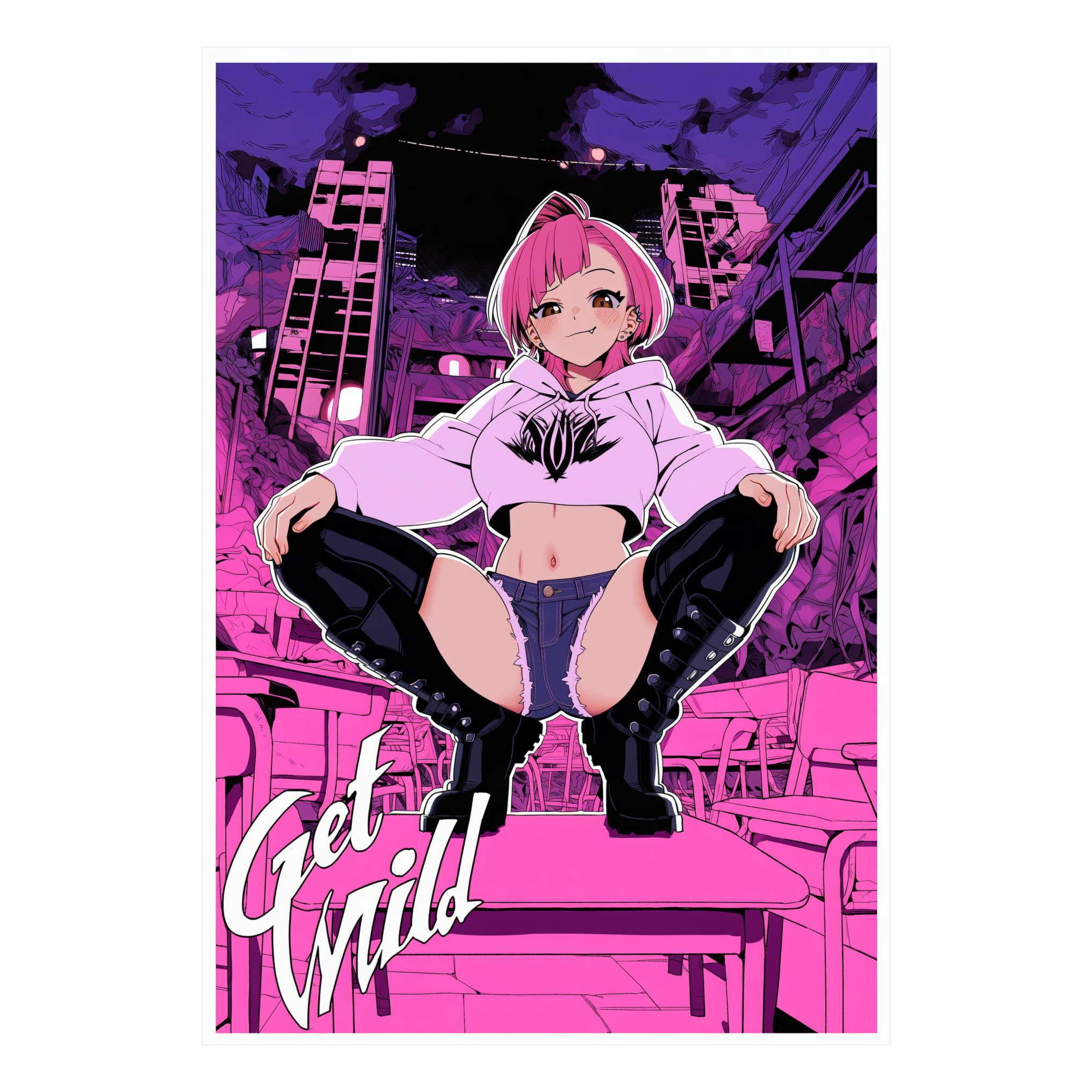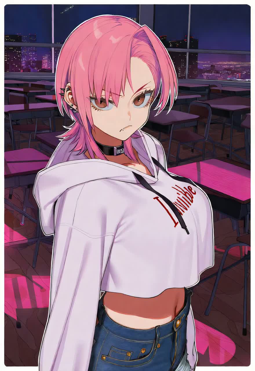 Gangster Trap Hip-Hop, K-pop Fusion, 125 BPM high-energy, powerful female rapper with seductive swagger, dark comedy freestyle, rebellious schoolgirl attitude, heavy 808s, mischievous and provocativ