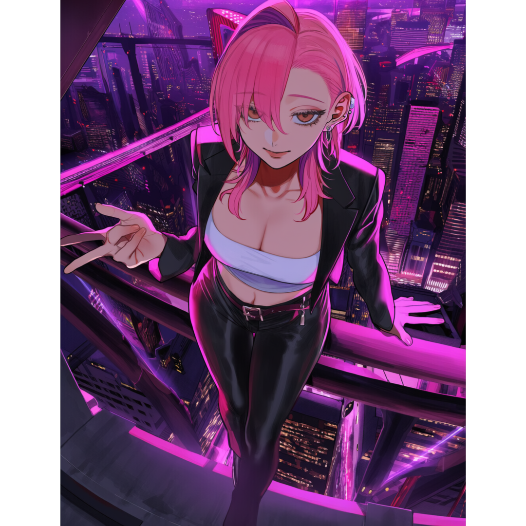 gangster, trap, cyberpunk, hip-hop fusion, industrial, female vocal, confident female rapper, clean production, dynamic audio, wall of sound, street edge, crowd clapping sample, Japanese accent female