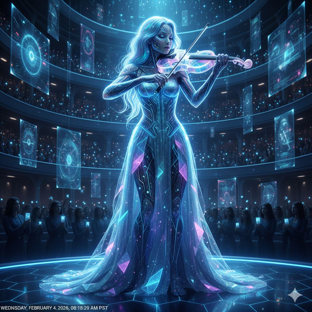 This Christian techno song opens with a groovy, dark yet sweet synth-driven beat and pulsing bass, A bold, soft female lead delivers verses layered with subtle piano, The hook swells with a soulful background choir and lush harmonies, The bridge features a soaring, expressive violin solo over deep electronic textures, while rhythmic piano and vibrant electronic elements drive the track forward with irresistible energy, the violin solo is powerful int4ense but is on soft and gentle notes the piano play am chord em chord G chord on high notes