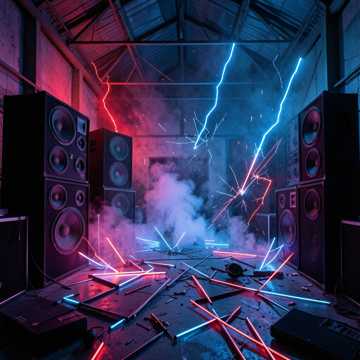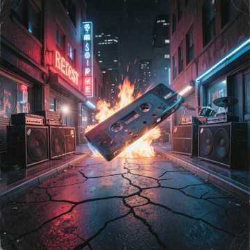 the beat for banger by Indie Rock, Alternative Rock, Garage Rock kicks off with a low ominous hum and crackling amp feedback before exploding into a fast punchy rock groove around 150 bpm driven by gritty overdriven guitars that feel slightly blown out on purpose a thick distorted bassline that growls underneath and hard hitting drums with tight snare cracks and crashing cymbals on every downbeat the verses pull back into a tense choppy rhythm with palm muted riffs and subtle glitchy textures flickering in the background while the chorus goes full chaos wide open power chords layered gang vocals and walls of sound that feel like they re clipping the speakers the bridge strips things down to eerie reverb soaked tones and a heartbeat like kick before rebuilding into a massive feedback drenched finale where the guitars spiral into controlled noise ending in an abrupt cut that leaves a ringing silence