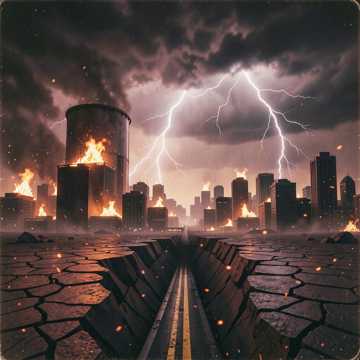 the beat for explosions for the end by Indie Rock, Alternative Rock, Garage Rock is a relentless high impact rock assault built around a driving tempo near 160 bpm powered by pounding kick drums and explosive snare hits that feel like shockwaves with crashing cymbals accenting nearly every beat to keep the energy constantly surging thick heavily distorted guitars deliver chugging riffs in the verses before opening into massive ringing power chords in the chorus while a gritty bassline follows tightly adding weight and momentum subtle background elements like distant sirens rumbling sub bass and glitchy static textures give it that apocalyptic atmosphere and the bridge strips everything back to a tense low end pulse before rebuilding into a final section where drums guitars and layered noise effects collide in a chaotic almost overwhelming wall of sound that mirrors the feeling of everything collapsing at once