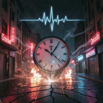 the beat for Rock, Alternative Rock, Pop Rock by Indie Rock, Alternative Rock, Garage Rock is a cinematic tension soaked build that feels like time itself is stretching and snapping it opens with precise ticking clocks and subtle percussive clicks layered over deep brooding synths that hum like a city holding its breath while sparse echoing piano notes and distant string swells create an eerie suspenseful atmosphere the bass is low and ominous vibrating under every tick and tock pulling the listener into the slow motion anticipation and just as the tension peaks all instruments erupt in a controlled explosion of distorted guitars thunderous drums and roaring synths transforming the measured suspenseful build into a shattering adrenaline fueled launch making it the perfect cinematic reset before the final climactic track