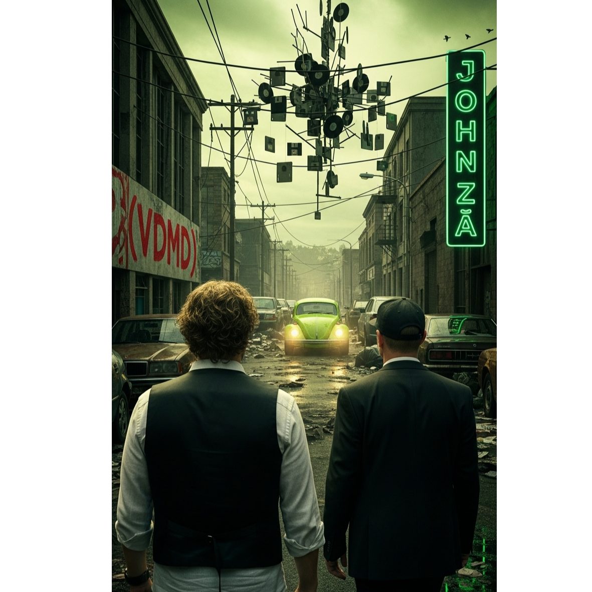 [Music: Raw and minimalist, The beat is a masterclass of found-object funk: trash can kicks, hubcap snares, and coin shakers, A relentless, dirty, and insanely groovy upright electric bassline is the absolute engine, A beautiful, ethereal female AI vocoder choir provides the only melodic hooks, ]