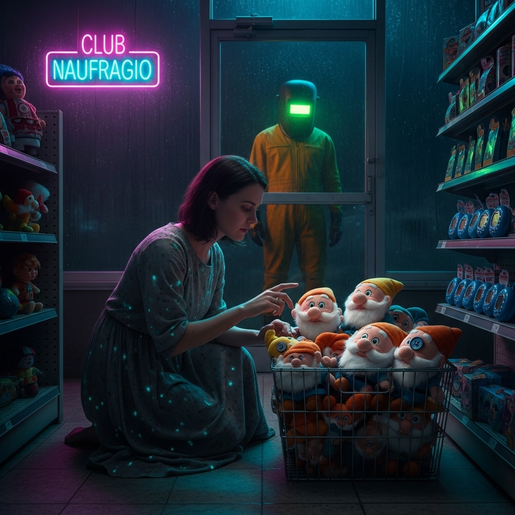 [Music Style: Glitchabilly, Industrial Cumbia, Rockabilly Swing, Dark Cabaret, 123 BPM, Key of C# minor, Cyberpunk Drums, Sensual Funky Bassline, Bitcrushed, Italian Language, Male Crooner Vocals, Ethereal Female Backing Vocals]