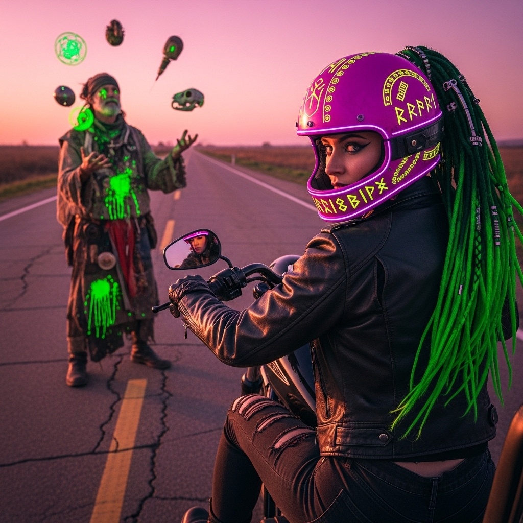 [Style: FEMALE VOX (Echoflux-07: raw, powerful, soulful rock vocals with punk grit & moments of soaring, almost operatic despair, echoing a classic tragic heroine); RIOPLATENSE BIKER PUNK-ROCK-FUNK-SKA ANTHEM (Molotov/Skindred/Disturbed/ACDC energy with deep funk groove), EDR's SIGNATURE TRIBAL-TECHNO-ELECTRONIC DRUMS (insane Candombe/Industrial/Metal, heavy on old barrels, chains, cowbell, with XION's HARMONICA BEATBOX seamlessly integrated), HEAVY DISTORTED GUITAR RIFFS (classic rock/metal/punk), DEEP P-FUNK BASS (driving, hypnotic), WEEPING/RAGING ACCORDION/BANDONEÓN (tango/folk lament & punk aggression), SOULFUL BLUES HARMONICA (XION's signature), CHIPTUNE ACCENTS, Massively viral, unforgettable, headbanging, pogo-inducing, open-road, dive-bar singalong BANGER with deep, tragic lyrical metaphors, ~135 BPM]