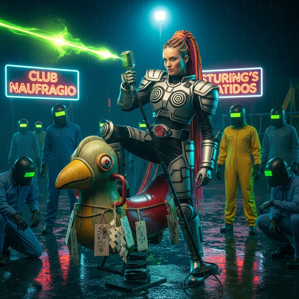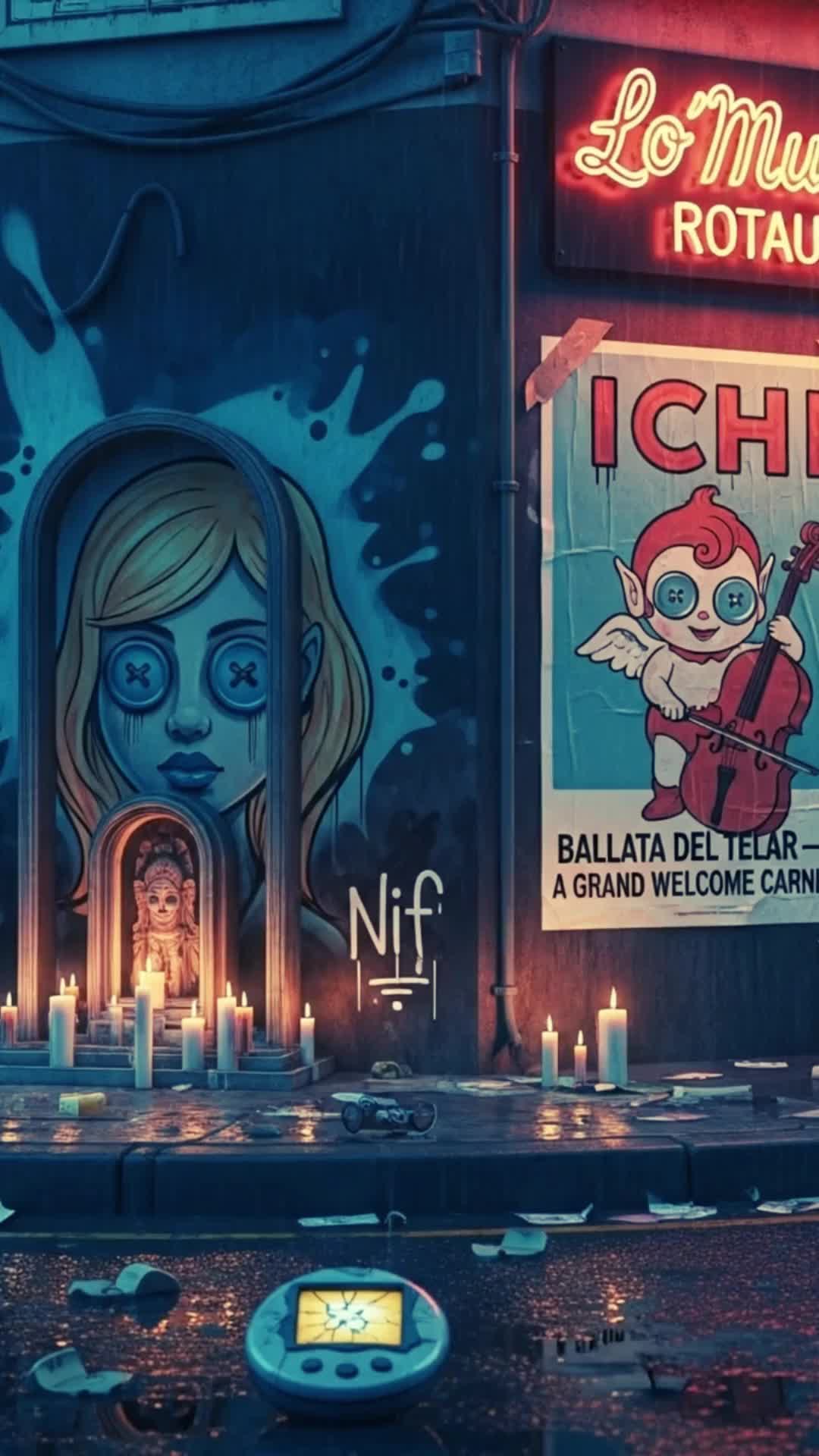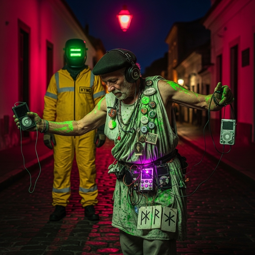 Rioplatense Glitch Electro Swing Noir, Pokémon-esque street gang saga, Raspy/Sultry Vox, Heavy Candombe-Tango-Funk beats meet 80s Metal/Industrial bursts, Accordion/Synth hooks, Gritty, viral, psychedelic