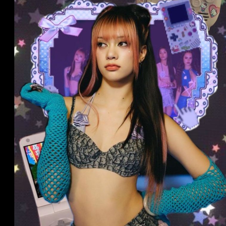 K-pop, Bouncy, synth-heavy, includes 8-bit effects, video game blips, and a polished trap-pop beat, Electro-pop, hip-hop, Y2K R&B, Fast-paced rap flows, confident tone, soft pretty vocals