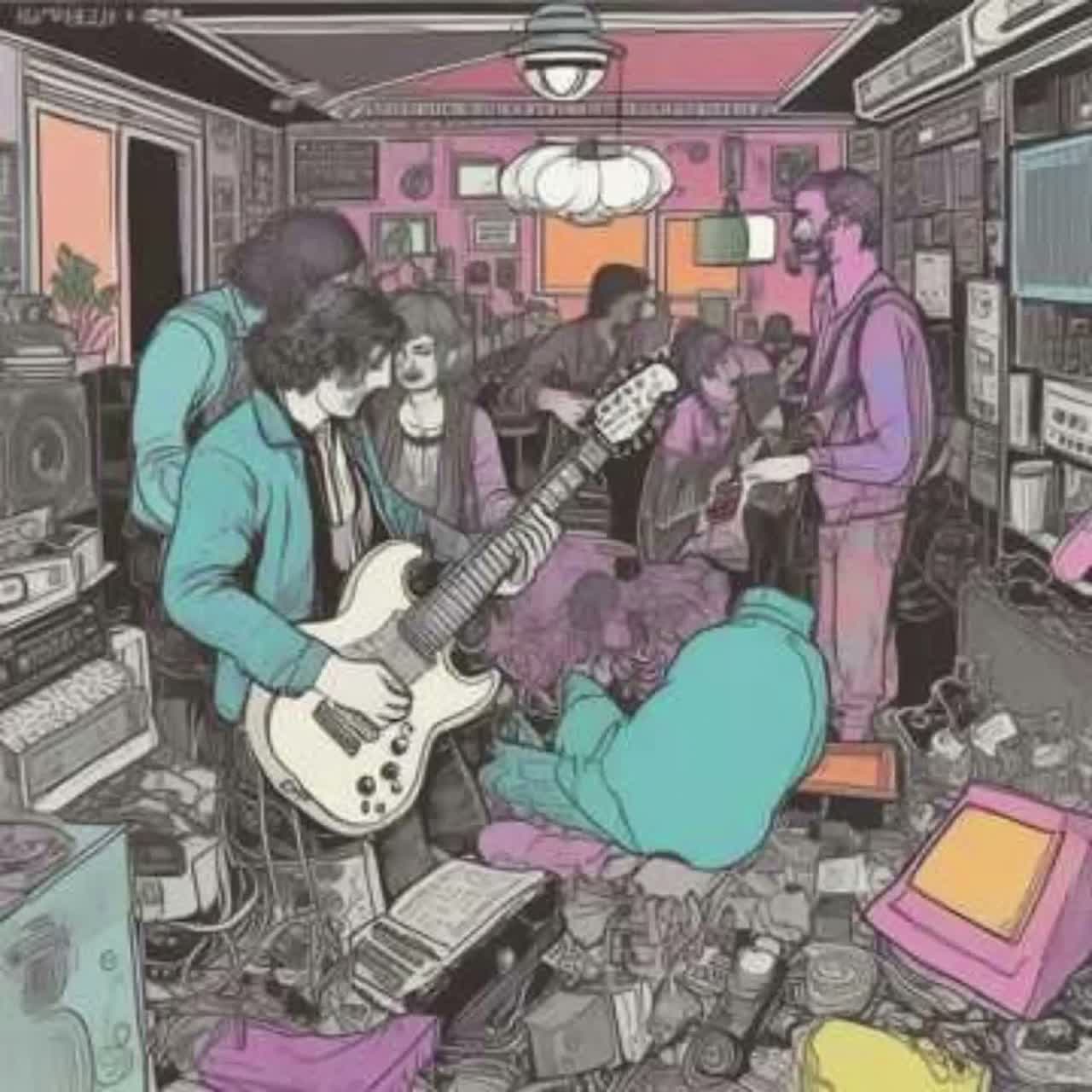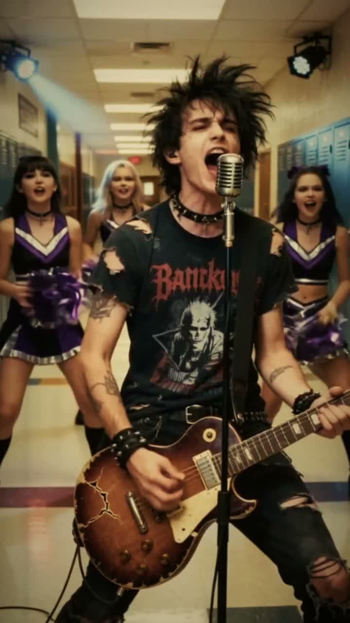 Opens instantly with aggressive, distorted punk rock guitars and wild alto piano, pounding punchy drums at 140 BPM, layered glitches, FX, and roaring bass riffs, Suddenly slows to 85 BPM noir—jazz-metal piano duels with noisy guitar, synth cyberpunk atmospheres, whispered horror textures, and sneering, theatrical vocals, The dynamic bass and distinctive melody drive each section, with scatted robotic, echoed hooks and demonic whispers emerging, fusing grunge, indie, and punk for a chaotic, emotional, immersive sound, power bass