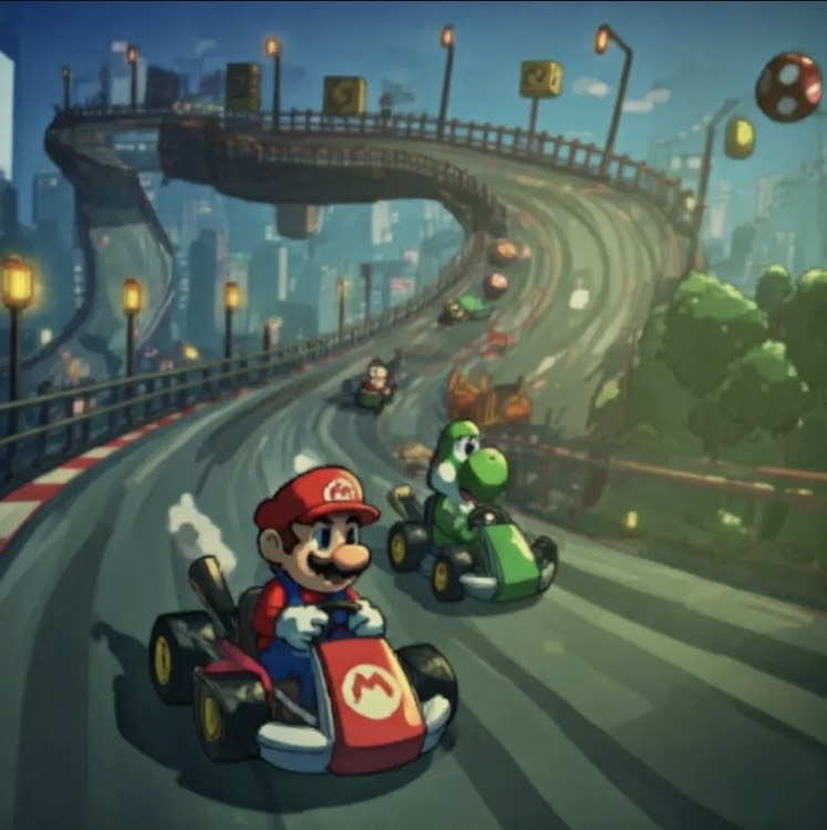 This instrumental piece is a high-energy, upbeat rock anthem with a driving rhythm section and prominent electric guitar melodies, The tempo is fast, creating a sense of urgency and excitement, The instrumentation includes electric guitars, bass guitar, and drums, The electric guitars feature a distorted tone, playing both rhythmic power chords and melodic lead lines, The bass guitar provides a solid, foundational groove, while the drums lay down a powerful beat with frequent cymbal crashes and snare fills, The song structure is primarily instrumental, with a clear main theme introduced early and repeated throughout, interspersed with variations and dynamic shifts, The overall production is bright and punchy, with a clear mix that emphasizes the guitars and drums, There are no vocals present in this piece