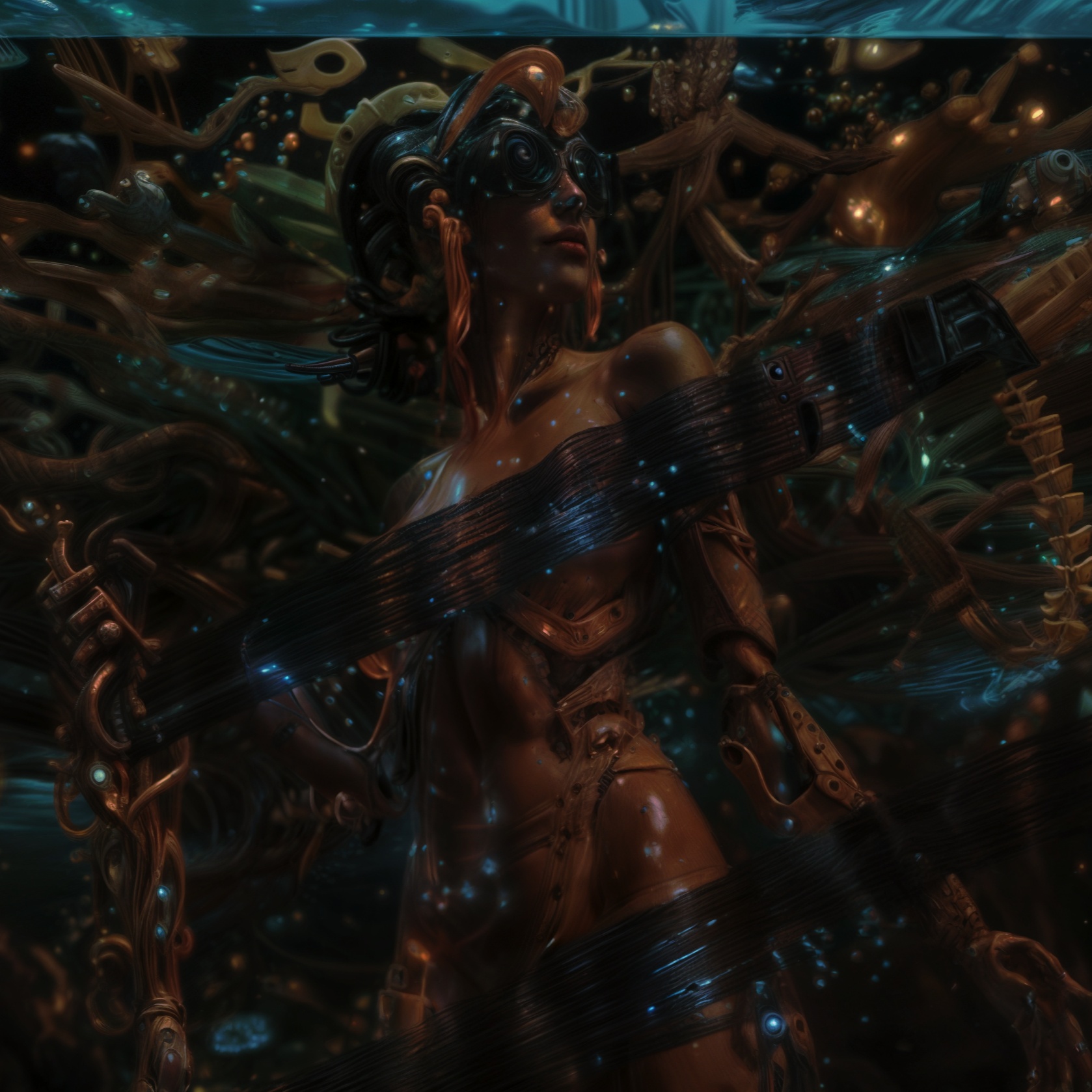 Ambient grunge foundation with lo-fi illbient drums textured like leather, submerged by an underwater filter, Low pass filtered electric guitar plucking soft art rock melodies fight the ambient noise wall, Washed-out layers form a dense wall of ambient noise and metallic harmonics, Whisper vocals hover in near-ambient space, framed by tremolo reverb, string swells fill in layers underneath, pink noise, and 90% stereo alignment; phase-locked, distorted, and soothing bass anchors the mix, Verses are whispered, Chorus 1 rises in energy throughout, Chorus 2 decreases energy throughout