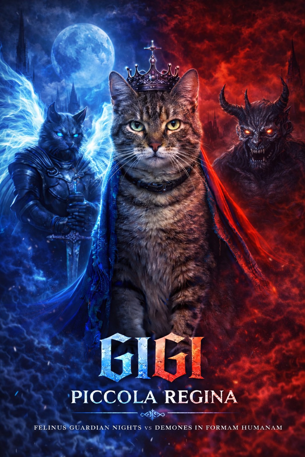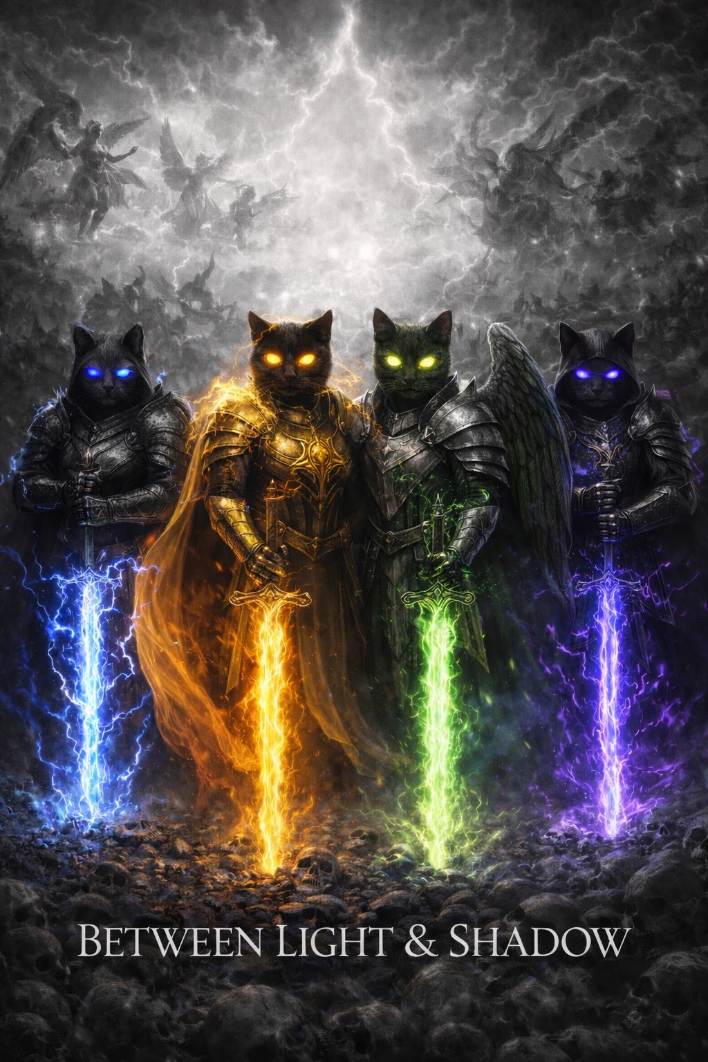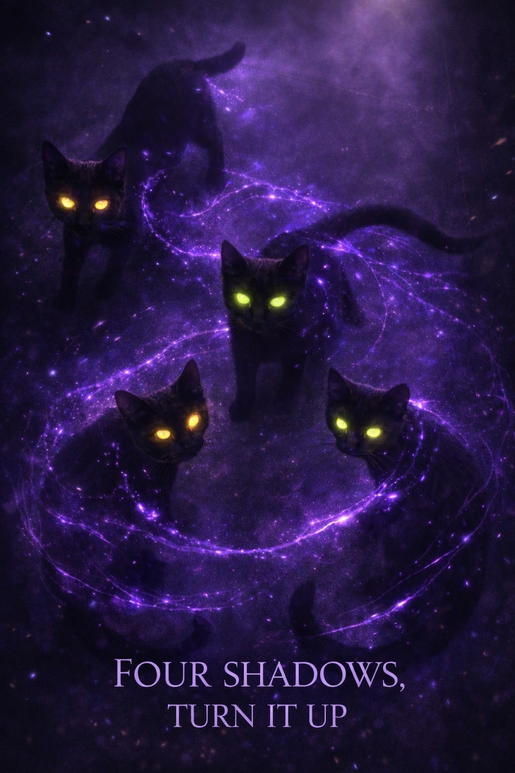 Dark gothic industrial rock with hybrid drop, 95–110 BPM, Alternating groove: fast sharp sections vs slower heavy pulses, Punchy kick, deep sub bass, Aggressive guitars with tight rhythmic cuts, Add glitch effects, stop-start breaks and sudden silences, Prominent violin with fast streaks (Kyara) contrasted with low dark drones (Shadow), Hybrid electronic drop with distorted bass pulses and rhythmic interruptions, Female vocals intimate, breathy, whispered but intense, Layered vocals in chorus with dark backing voices, Tension, contrast, duel-like energy