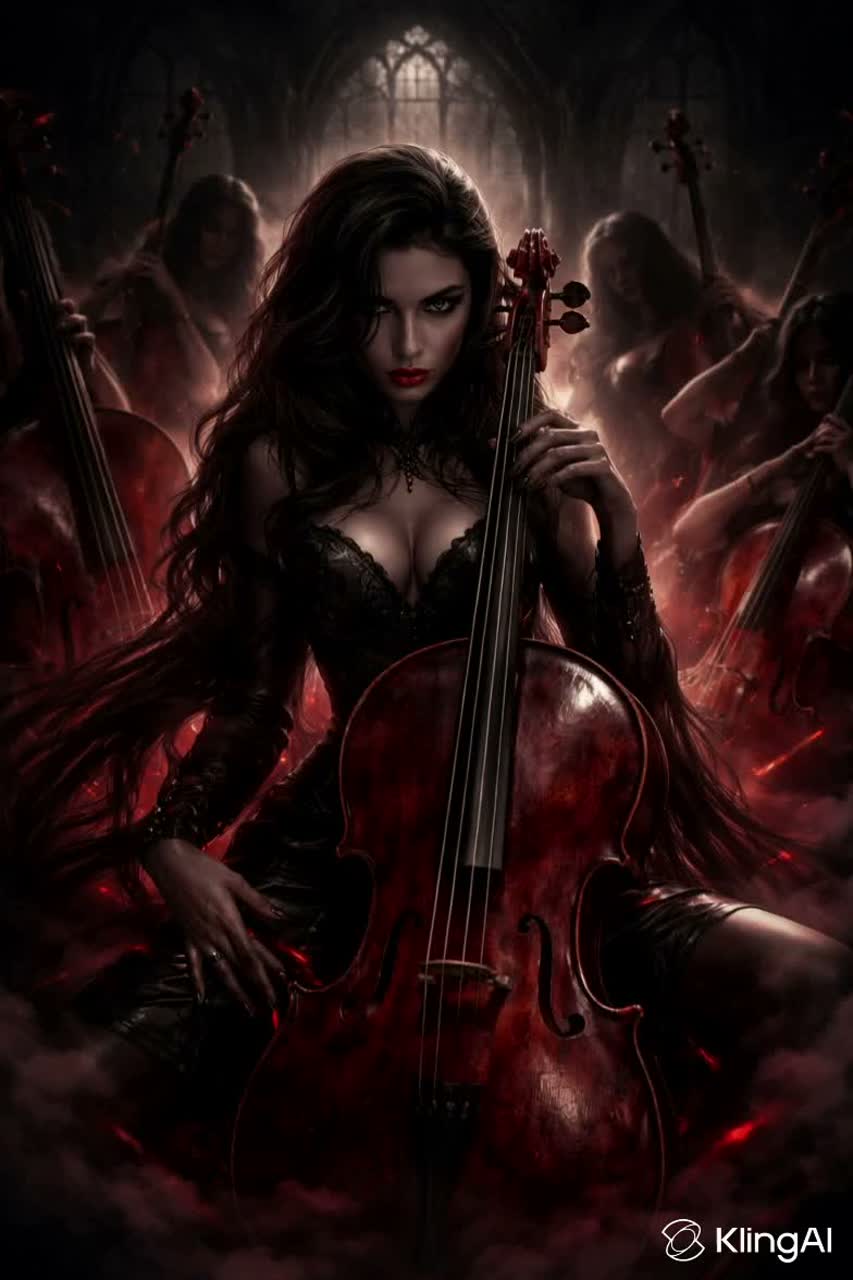 Wobbling, Mechanical, Grimy, Glitched, All Female Evil Necroticstep/Terrorstompboogie/Frenzypunk hybrid with thick violent angular walls of Finnish cellos play polyrhythmic, syncopated Dorian mode, scordatura cello riffs C2/D3/G2/A3 with percussive slap tap, ricochet, aggressive spiccato, Choruses drop dense, brutal walls of cello Sautillé, Bartók Pizzicato, bowed tremolo, hammered pizzicato, mid-range glissandi, evoking maximal energy, Interludes feature crushing cello vamps and tarantella low-end ostinati, cellists unleashing tap-style solos intensity surges with martelé, sul pont, chopping, forging high harmonics, Arrangements feel like a single instrument, subtle dissonances and rhythmic shifts make it sound alive, No drums, no guitars, no synths, just cellos, cellos, and more cellos, layered to sound like a ghost orchestra, The dynamic range should be whisper to scream, Clicking Noises, Finger Snapping, Hand Clapping, Lead vocalist gender is female, ‑Backup vocalists gender is Fem